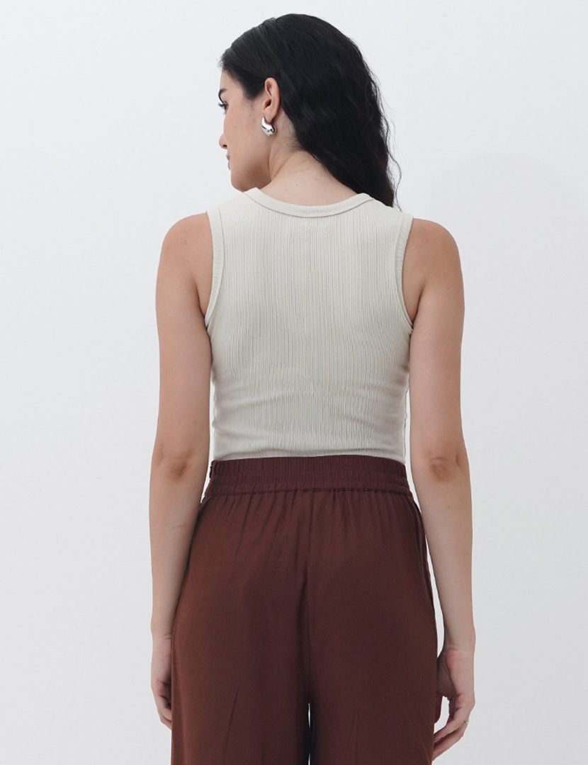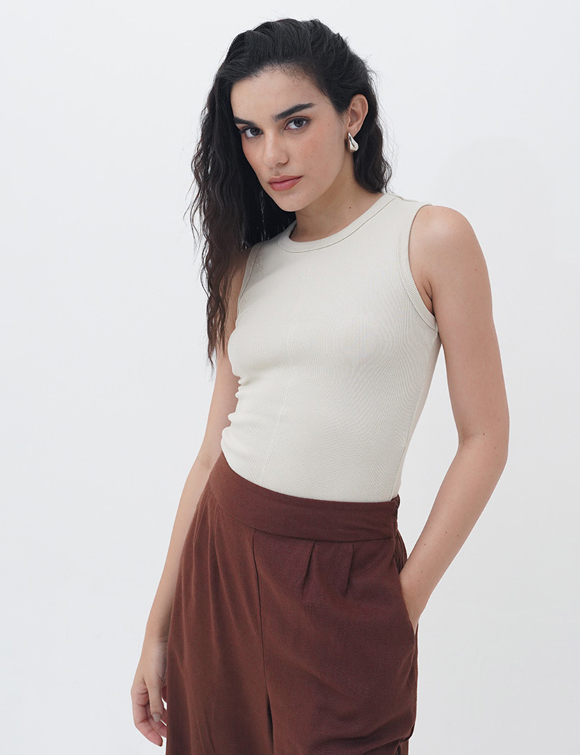 Tank top made of a cotton blend fabric. Featuring a round neckline, wide straps and ribbed trims.