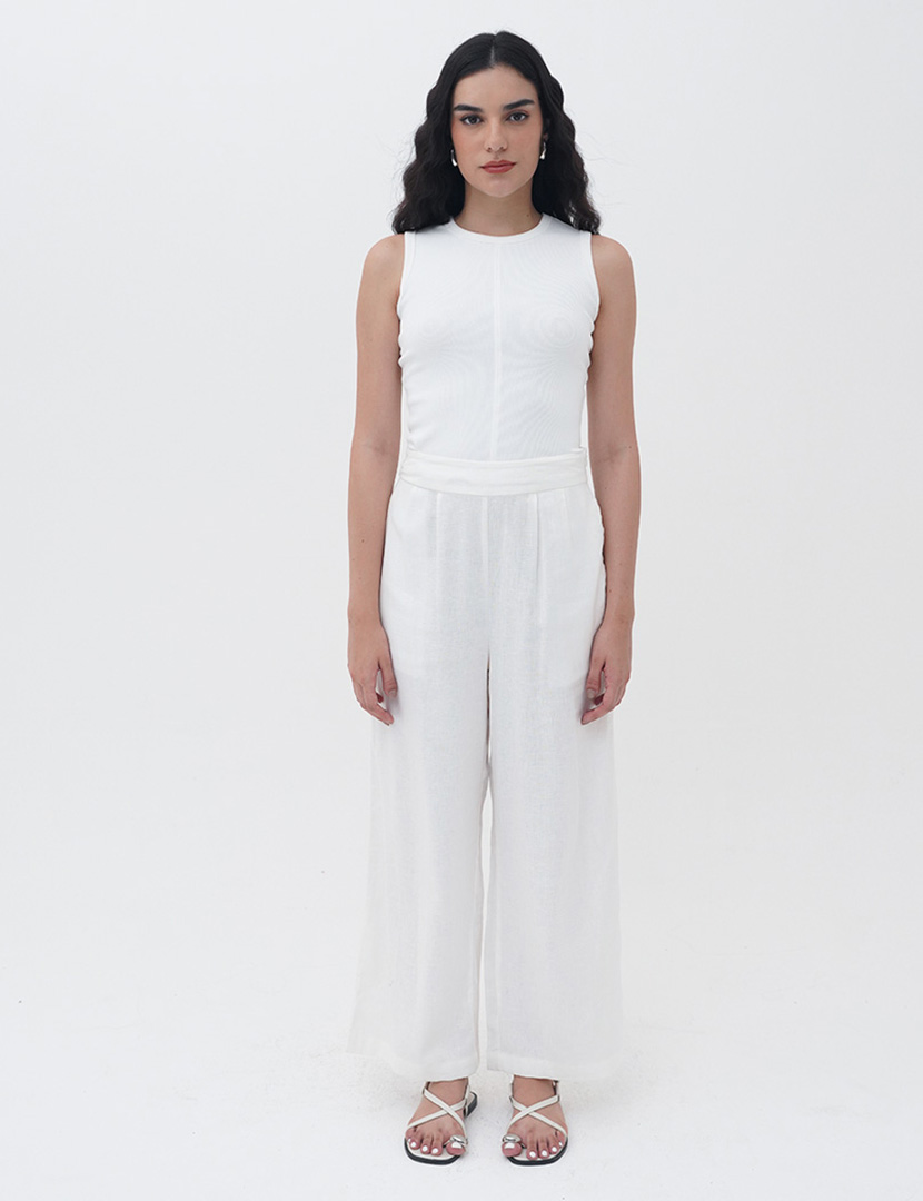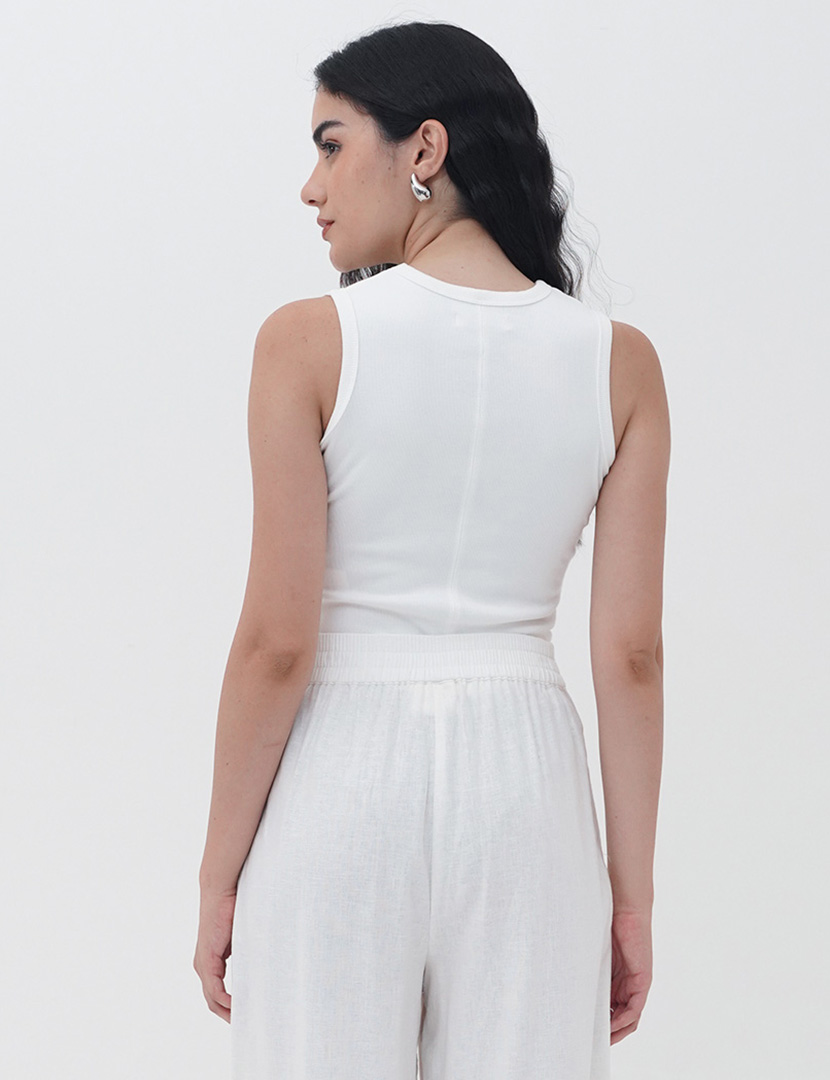 Tank top made of a cotton blend fabric. Featuring a round neckline, wide straps and ribbed trims.
