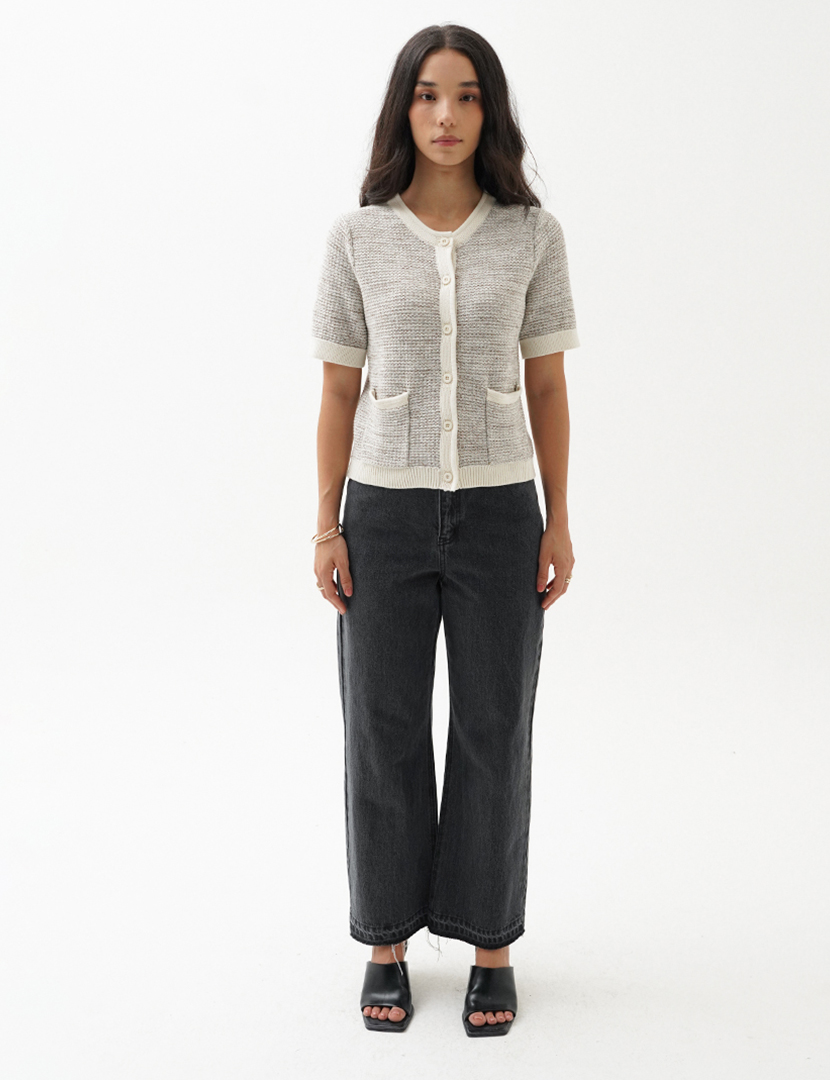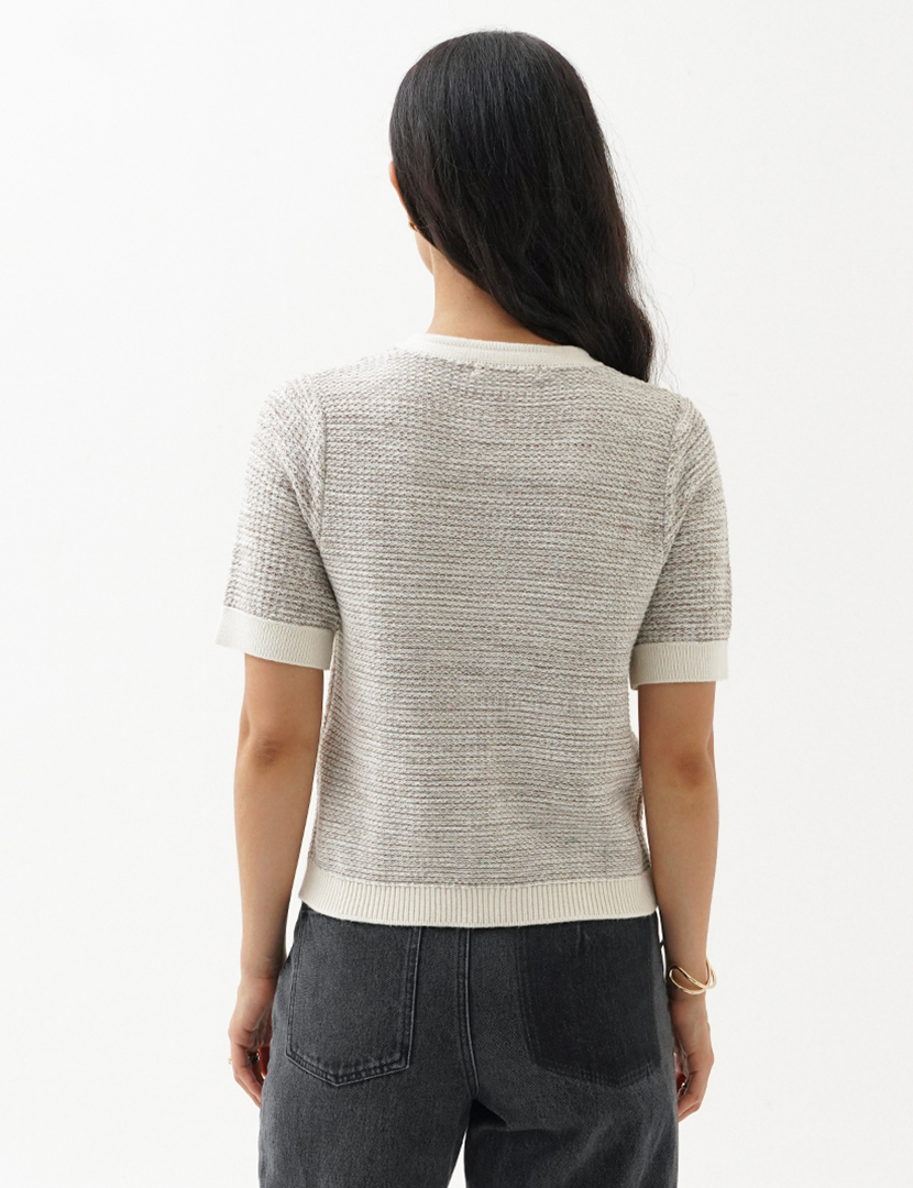 Plain Fine Knit Sweatshirt With Buttons Taupe