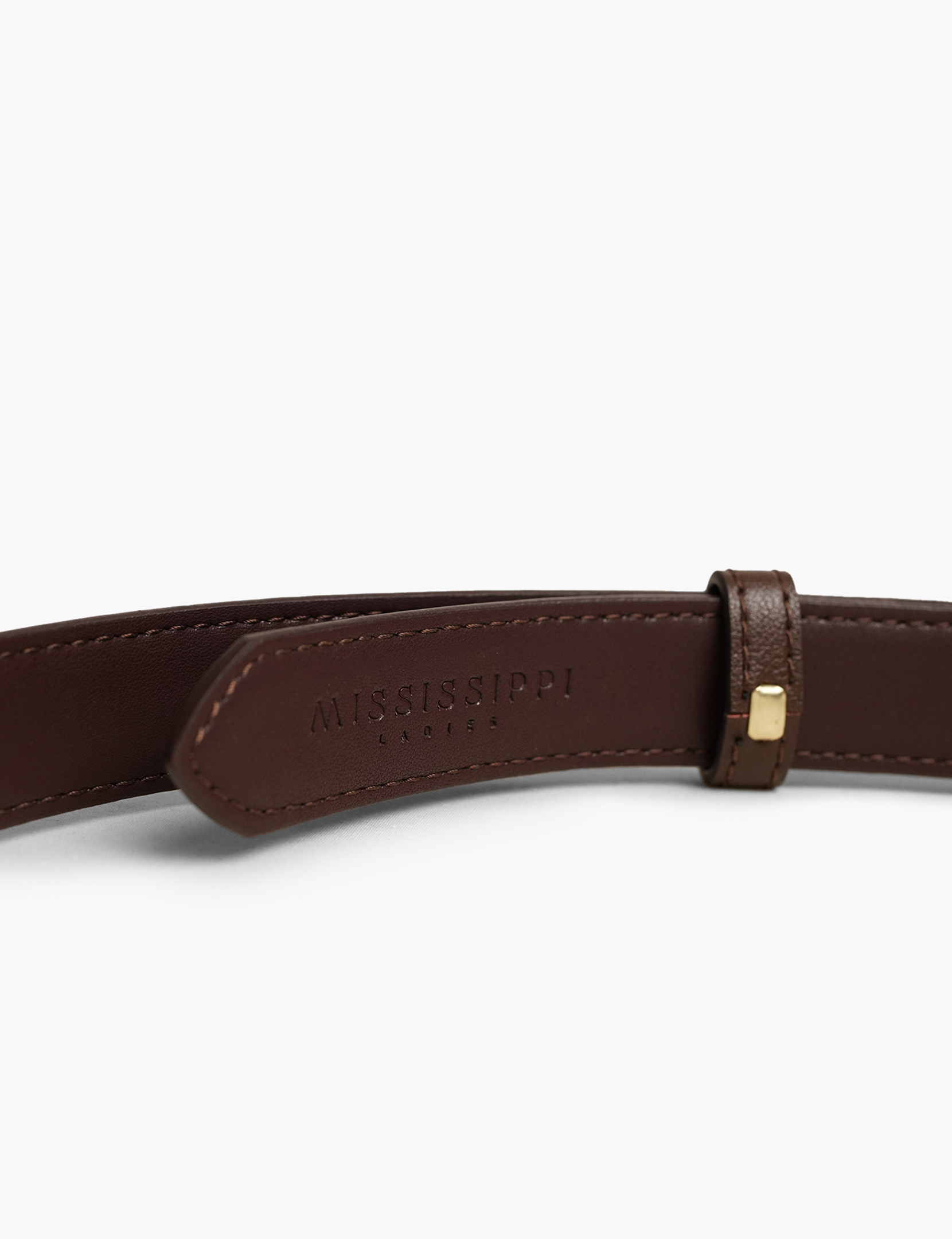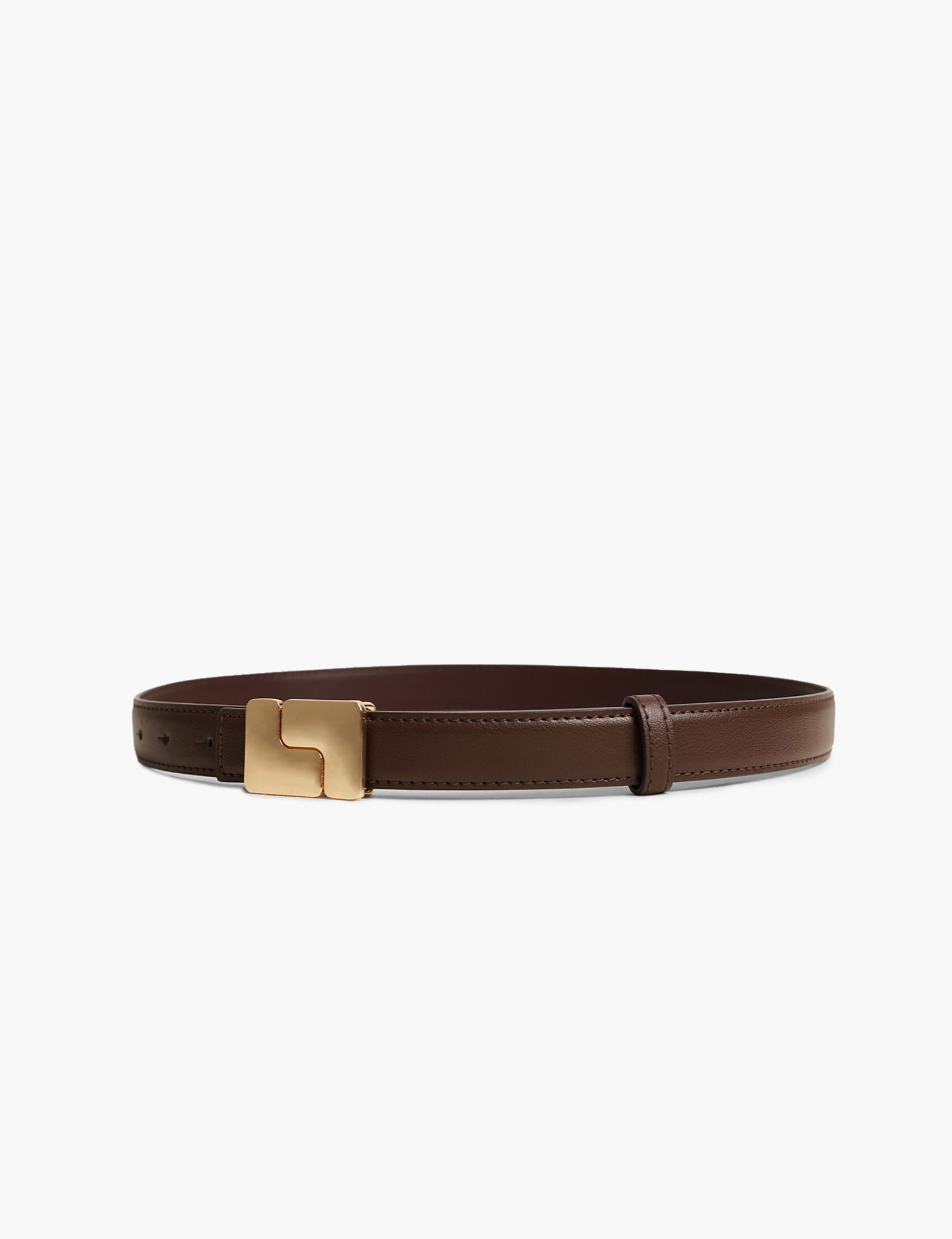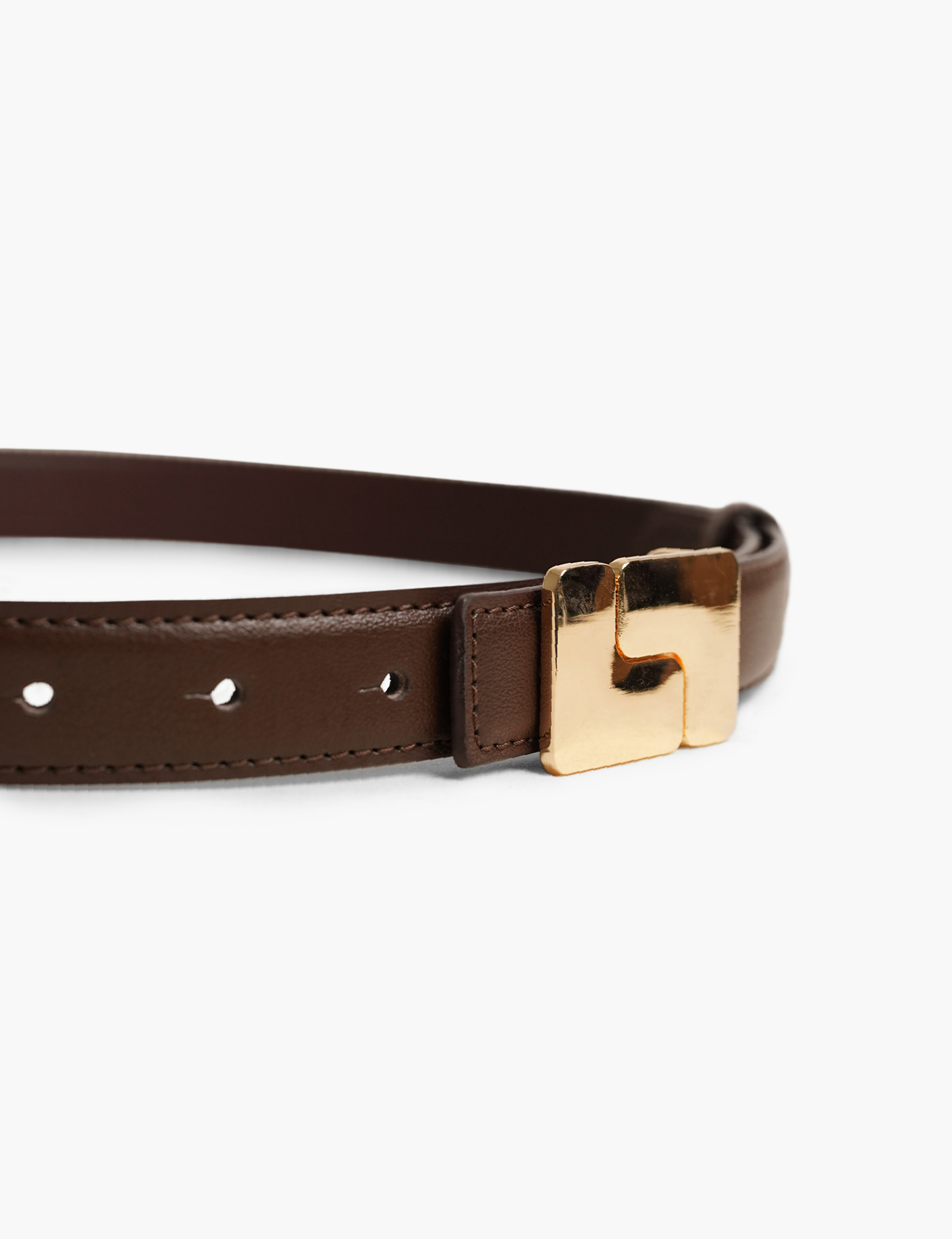 Synthetic leather belt, fastening with square rose gold buckle and belt loop.