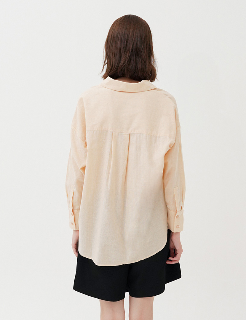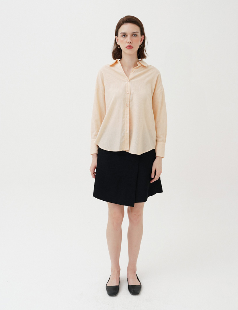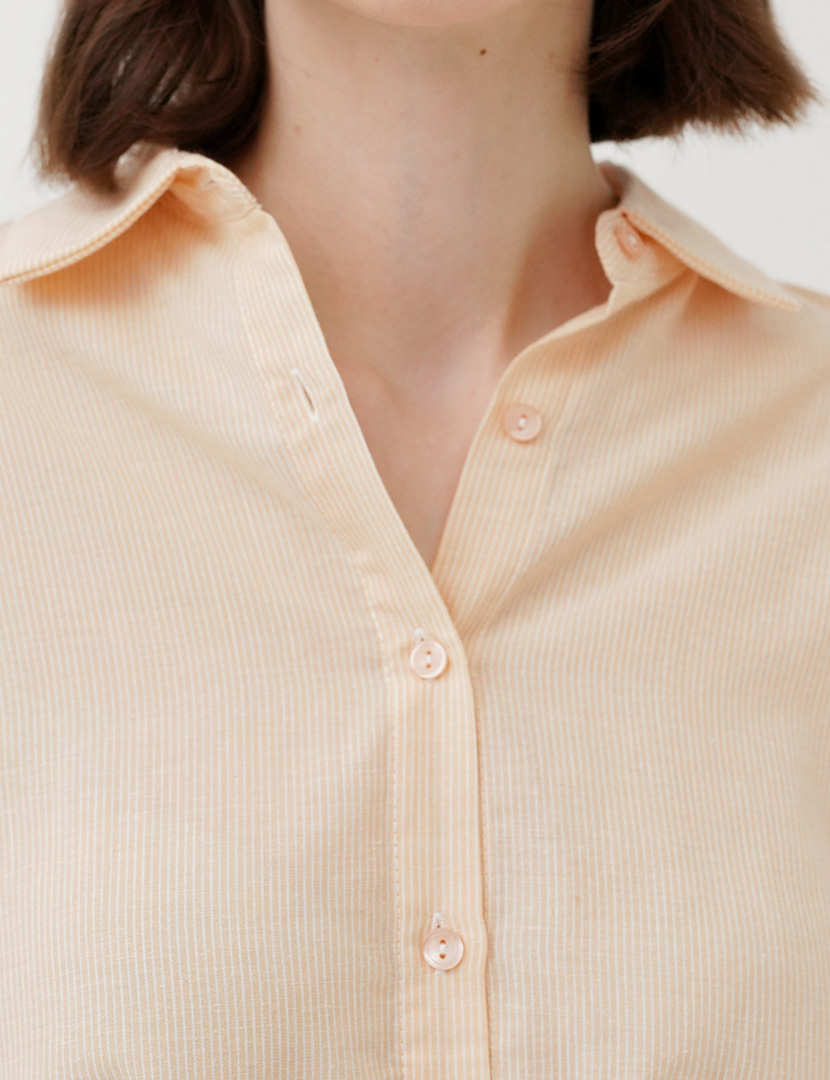 Collared shirt and featuring long sleeves and button fastening at the front.