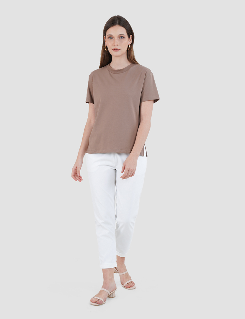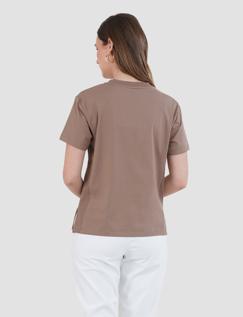 T-shirt with a round neckline and short sleeves, featuring rib side vents at hem.
