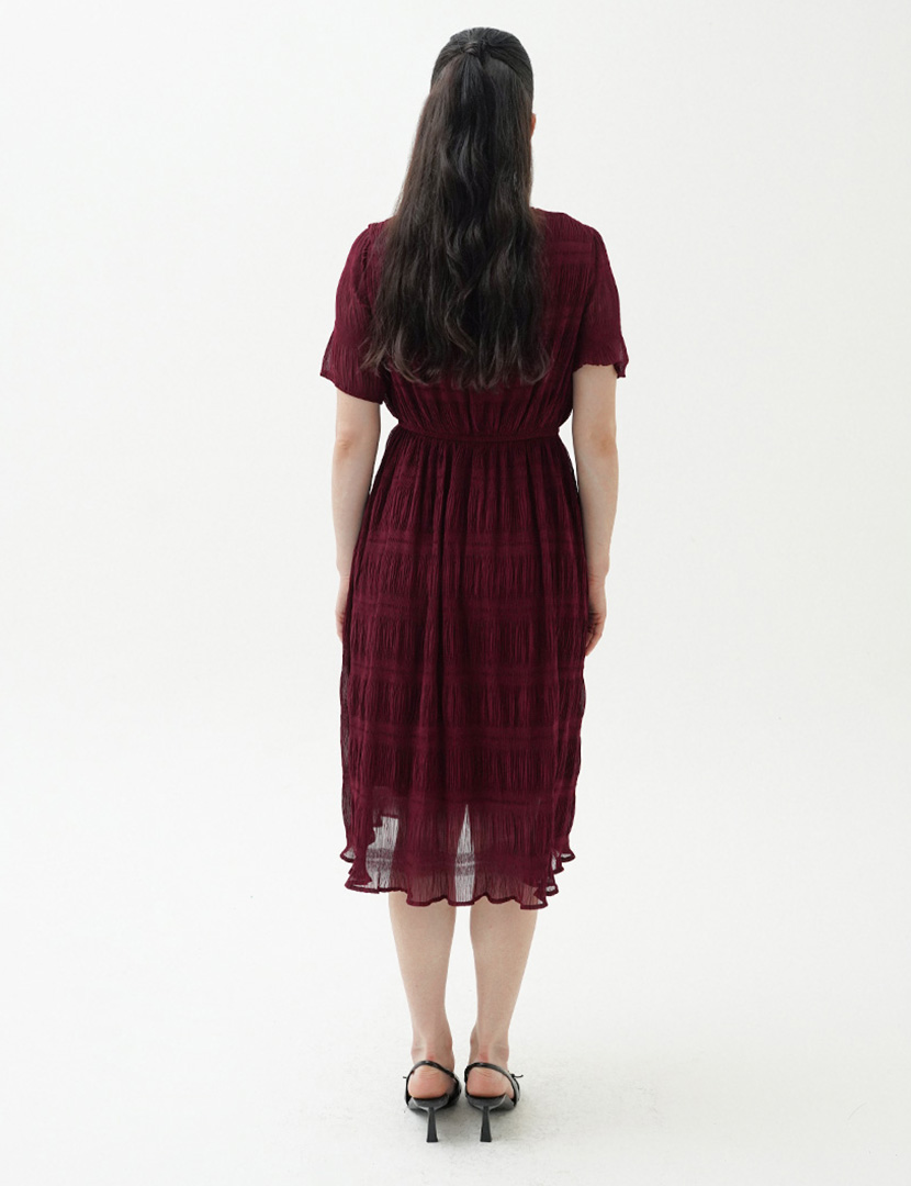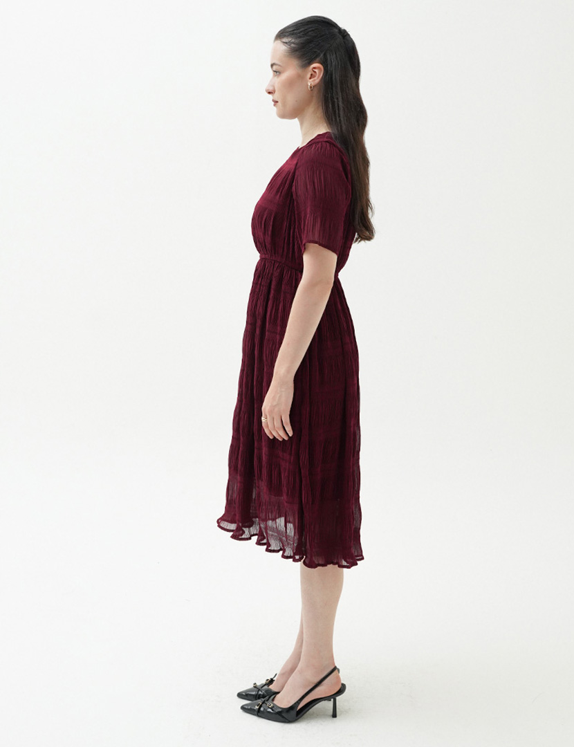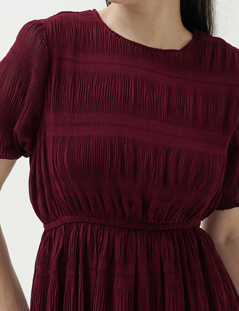 Textured Midi Dress Maroon