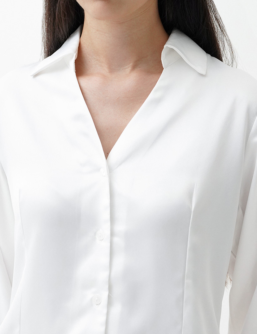 V-Neck Shirt With Seam Details White