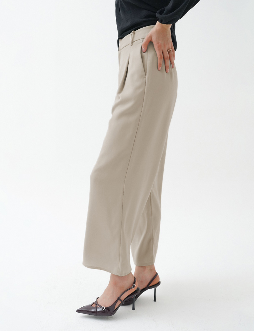Wide Leg Basic Trousers Cream