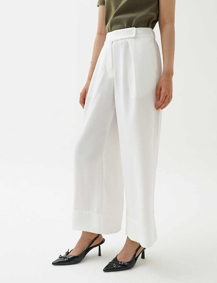 High-waist trousers featuring side pockets. High-rise pants cut from breathable cotton fabric feature a delicate hidden buttoned placket on the front.