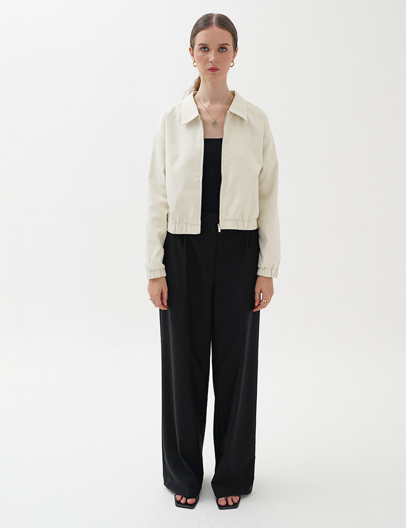 Jacket with a kent collar, zip fastening, pockets and an elasticated hem.