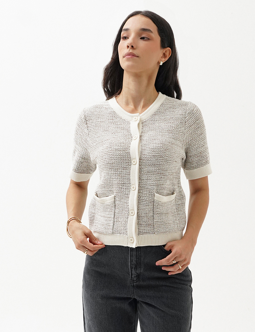 Short Sleeve Cardigan Sweater Brown