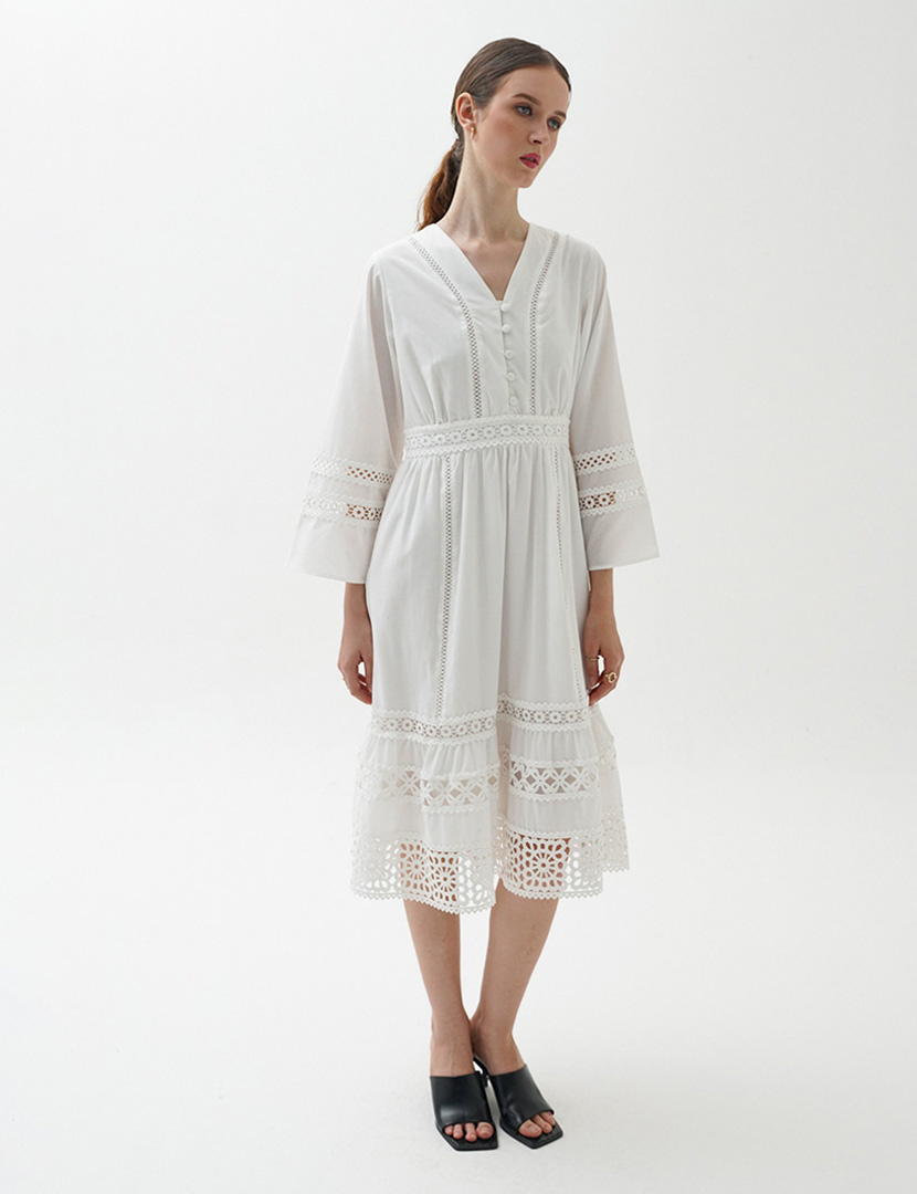 Open Work Detail Dress Off White