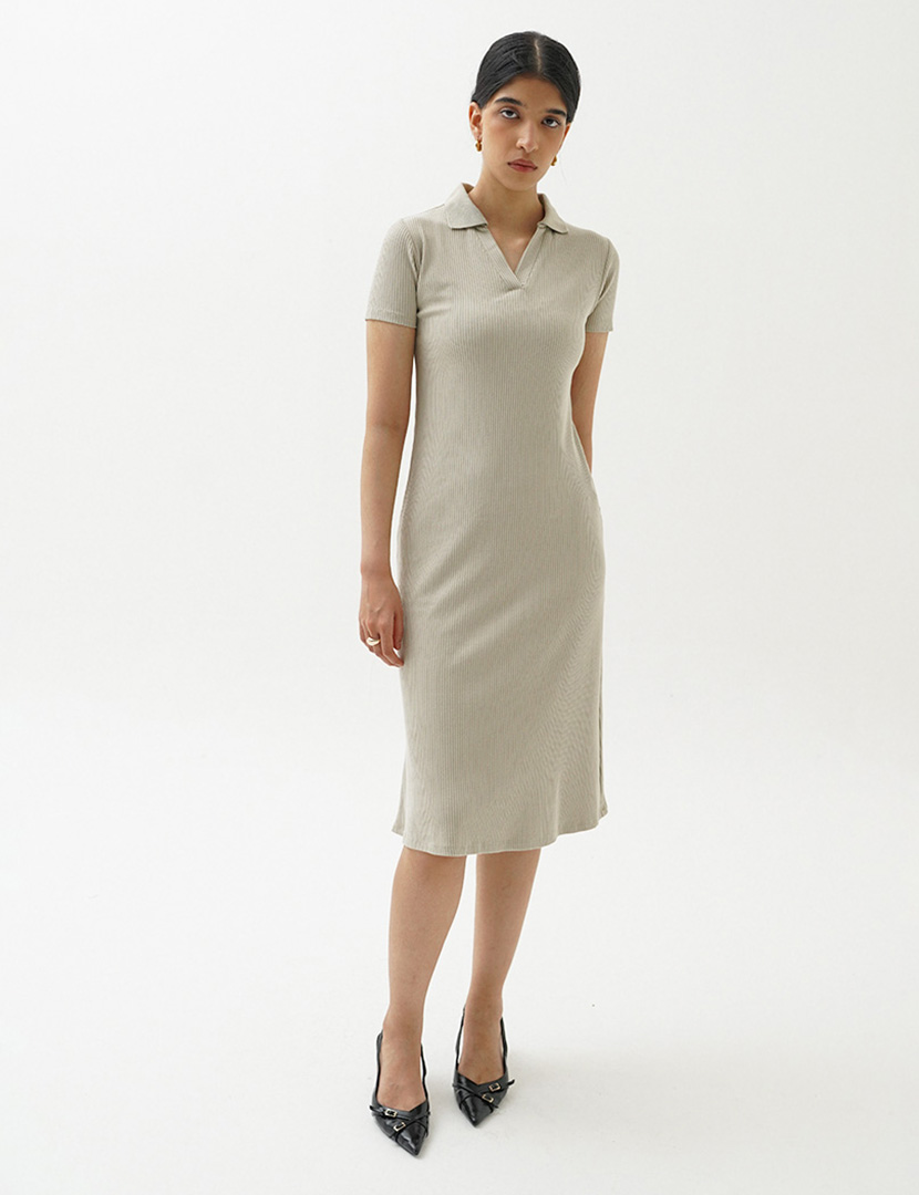 Ribbed Midi Dress Taupe
