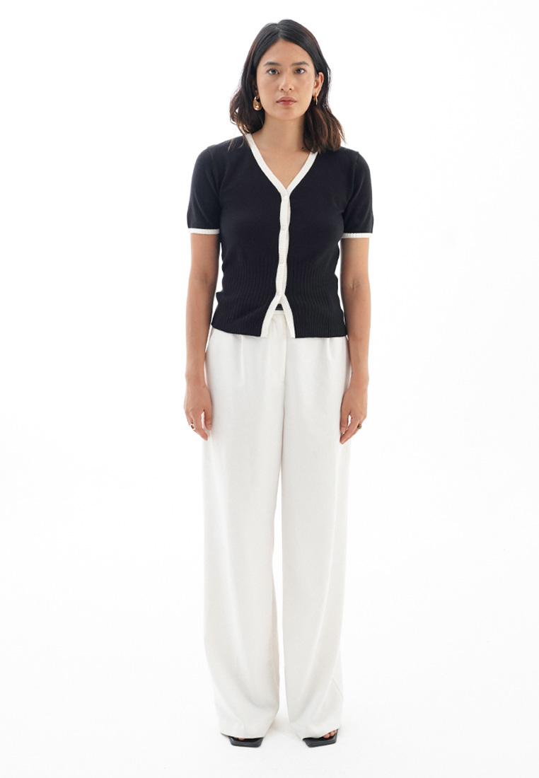 Contrast Knit Top Black
