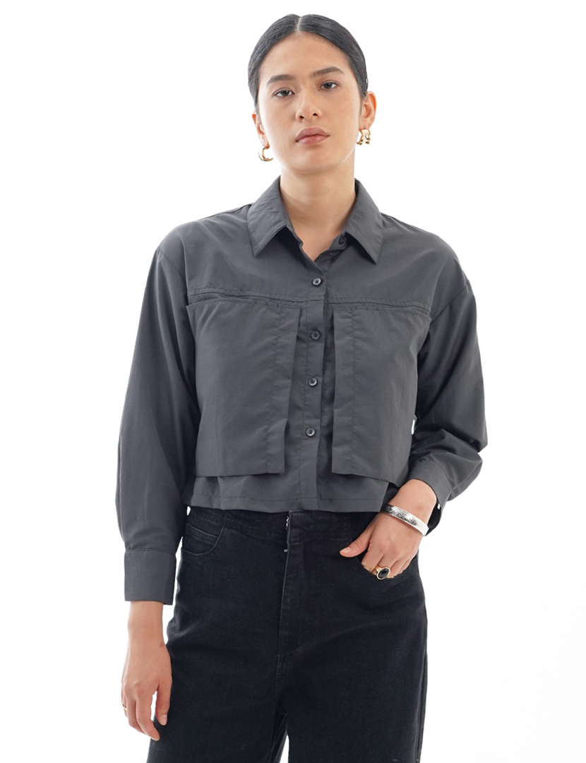 La Nature Cree Lapel Patch Shirt Dark Grey