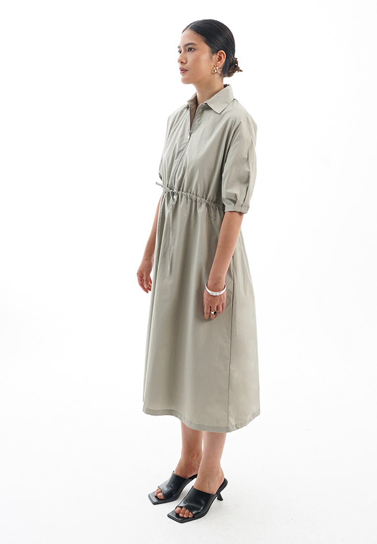 La Naturecree Midi Dress With Belted Waist Sage