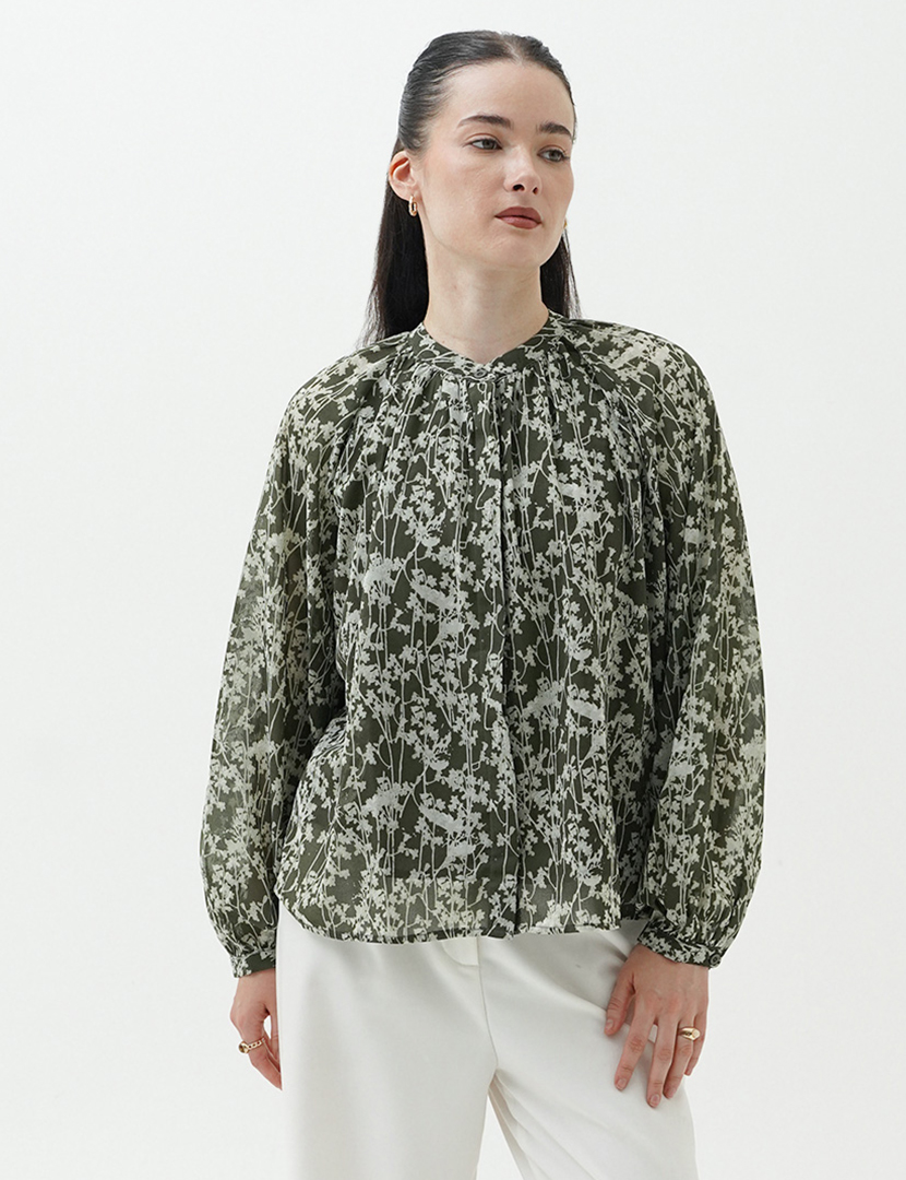 Pattern Flower Blouse Green