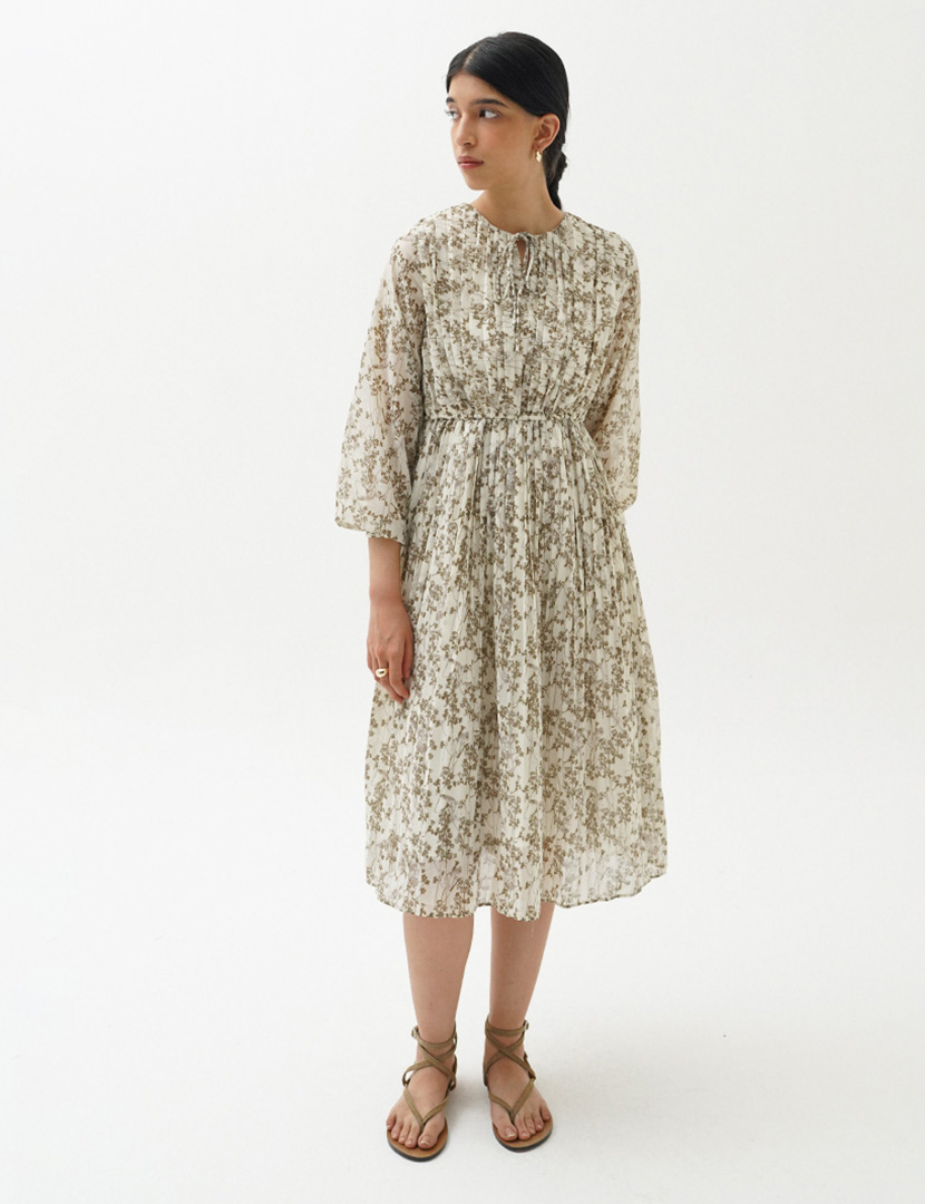 Pleated Midi Dress Cream