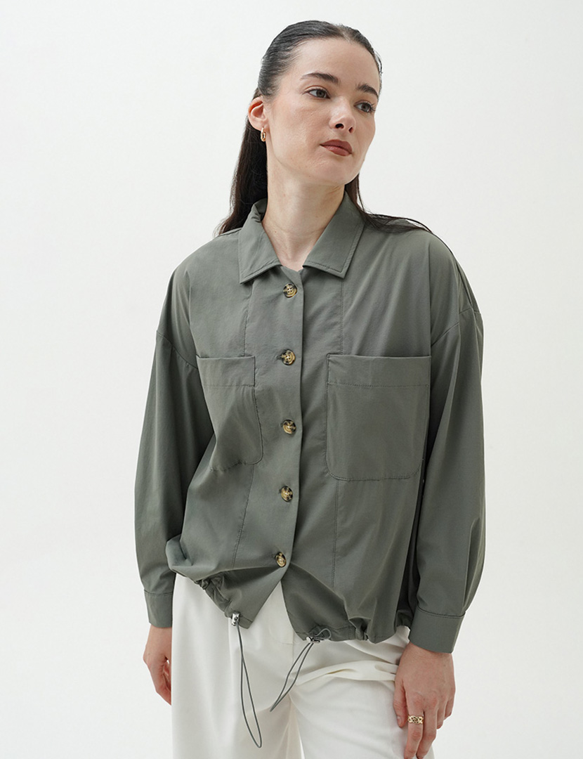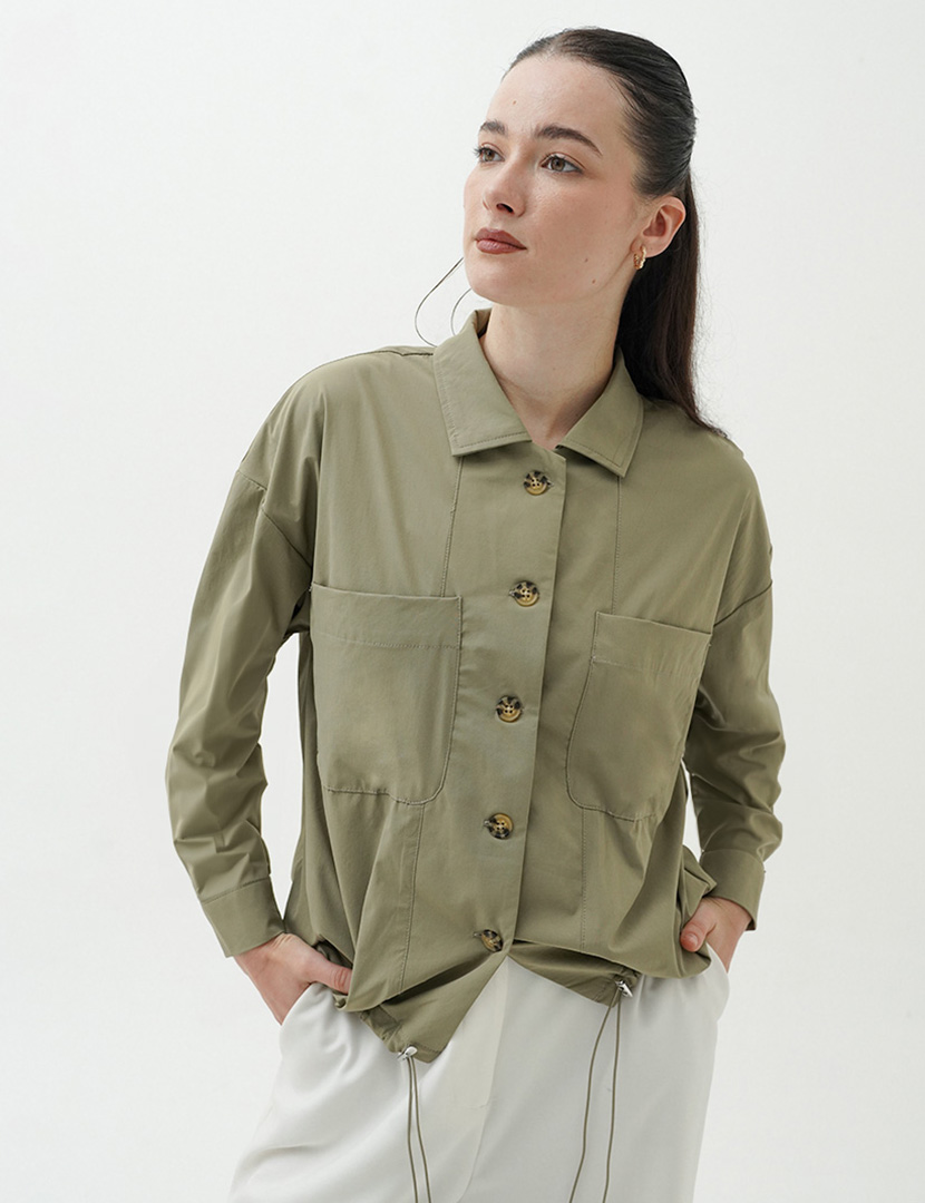 Long Sleeves Jacket With Drawstring Olive