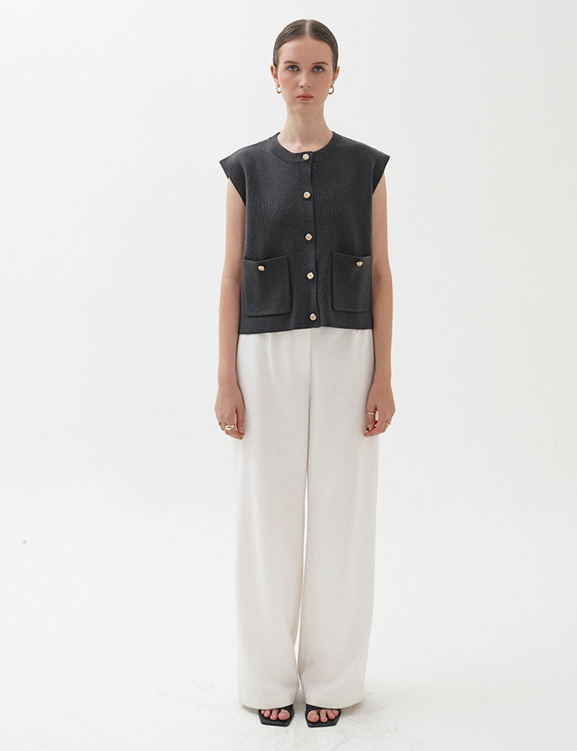 Plain Knit Vest Top Dark Grey