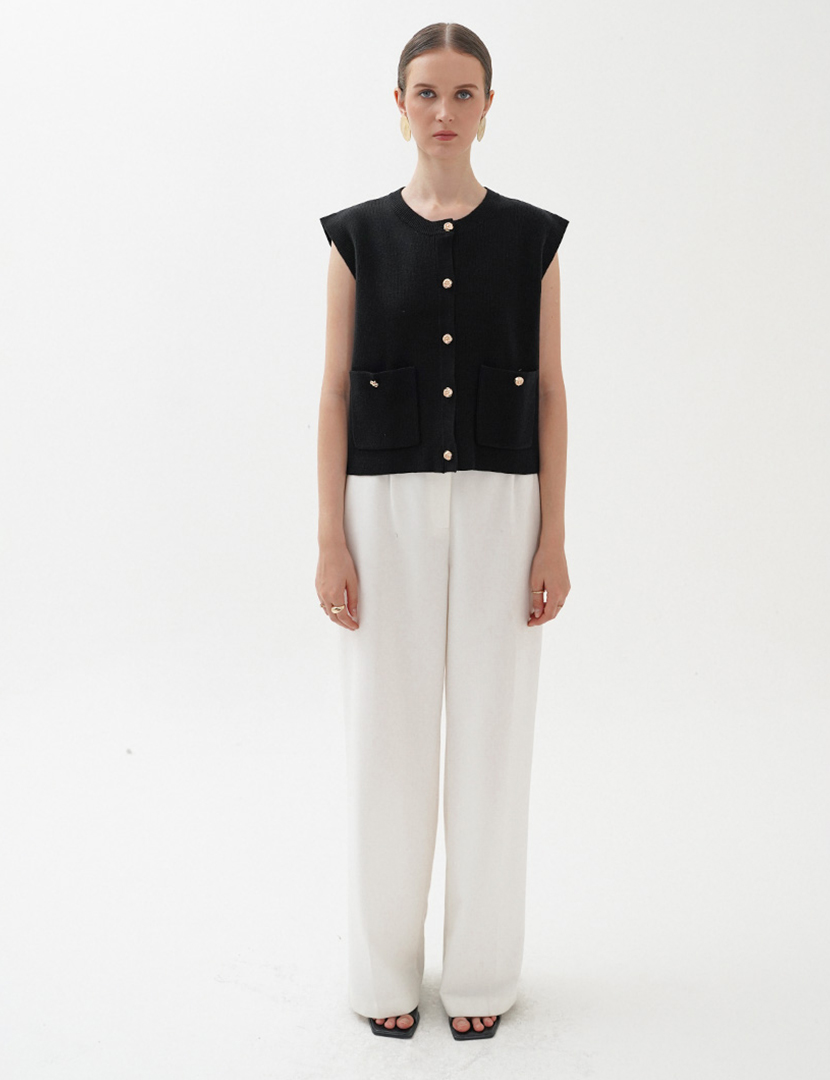 Plain Knit Vest Top Black