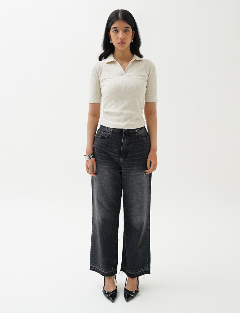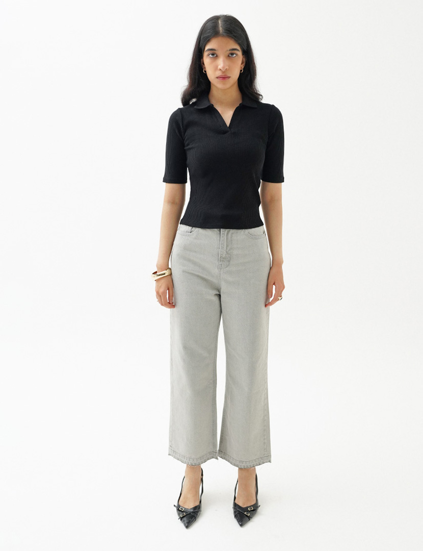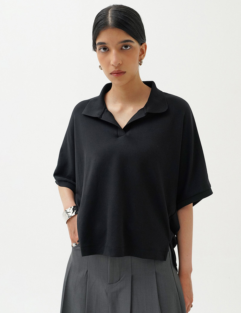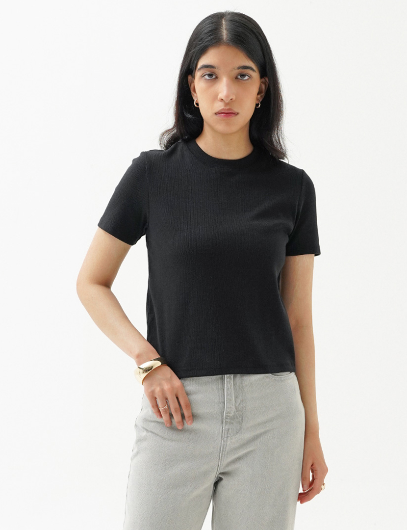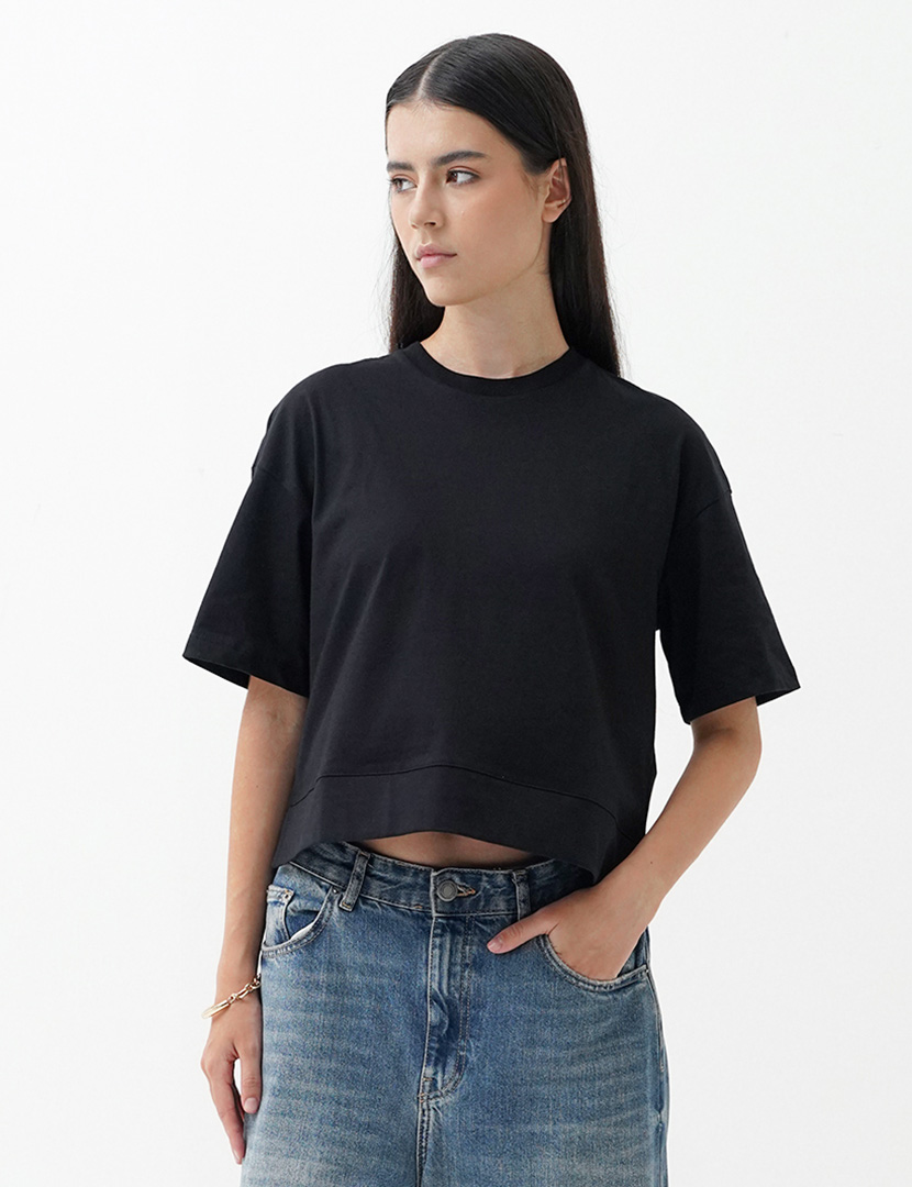 La Naturecree Cropped Cotton Blend Tweed Jacket Black