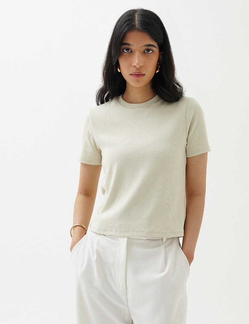 La Naturecree Cropped Cotton Blend Tweed Jacket Beige