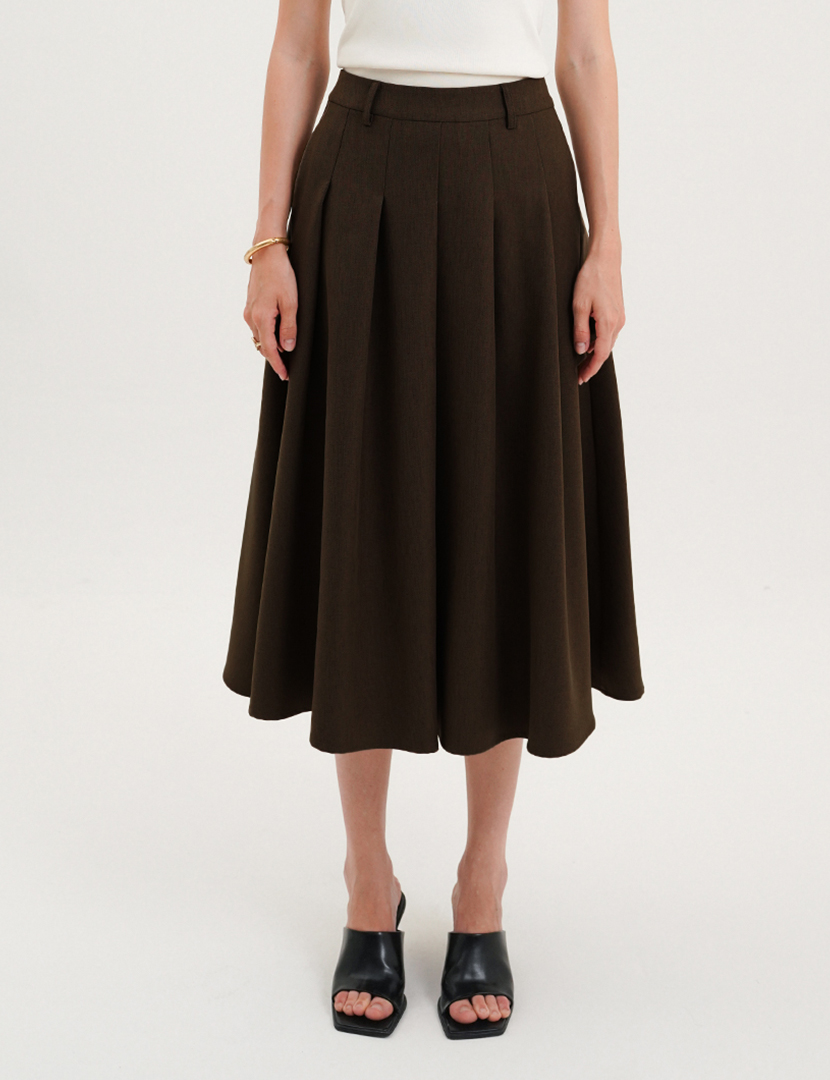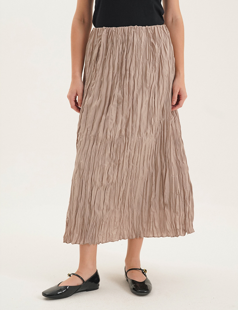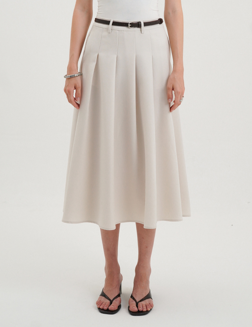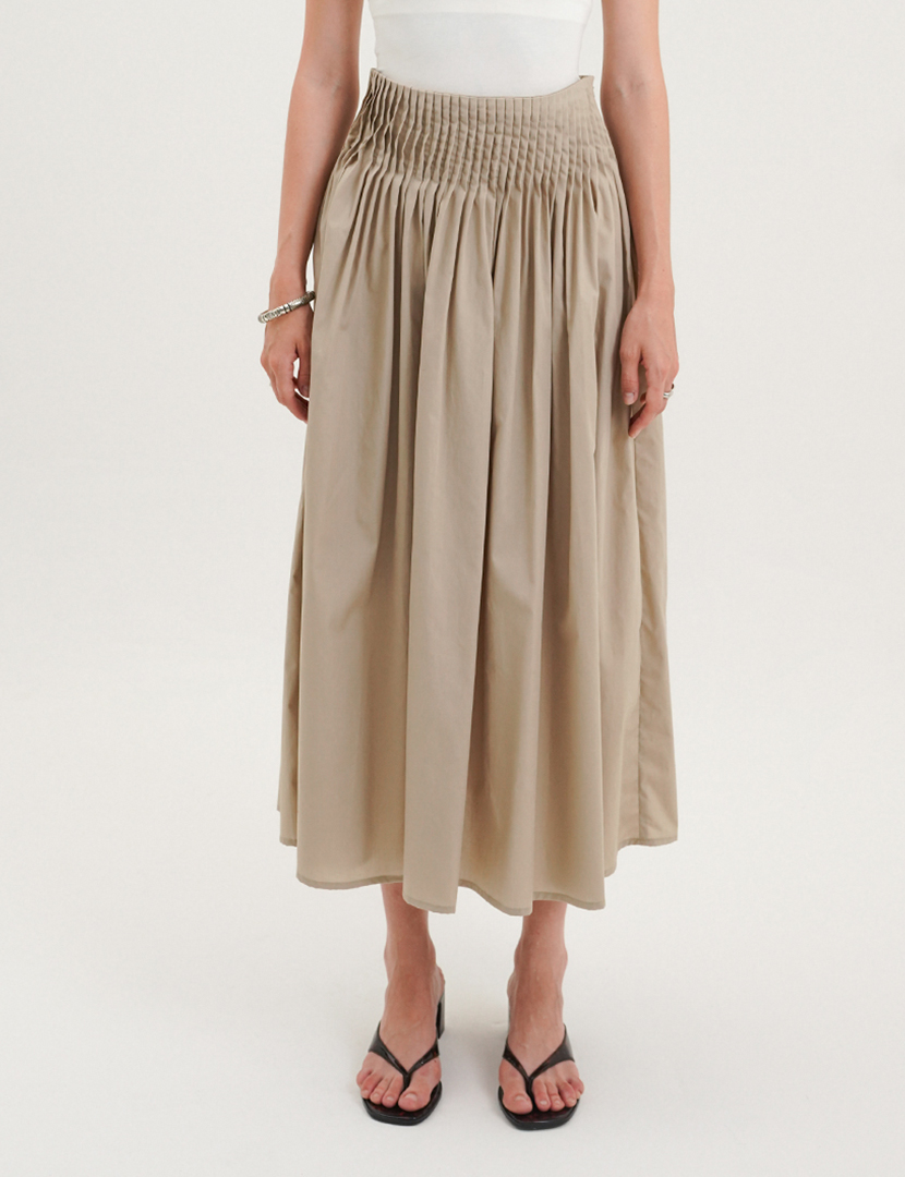 Fall Collection Cotton Pleated Midi Skirt Taupe