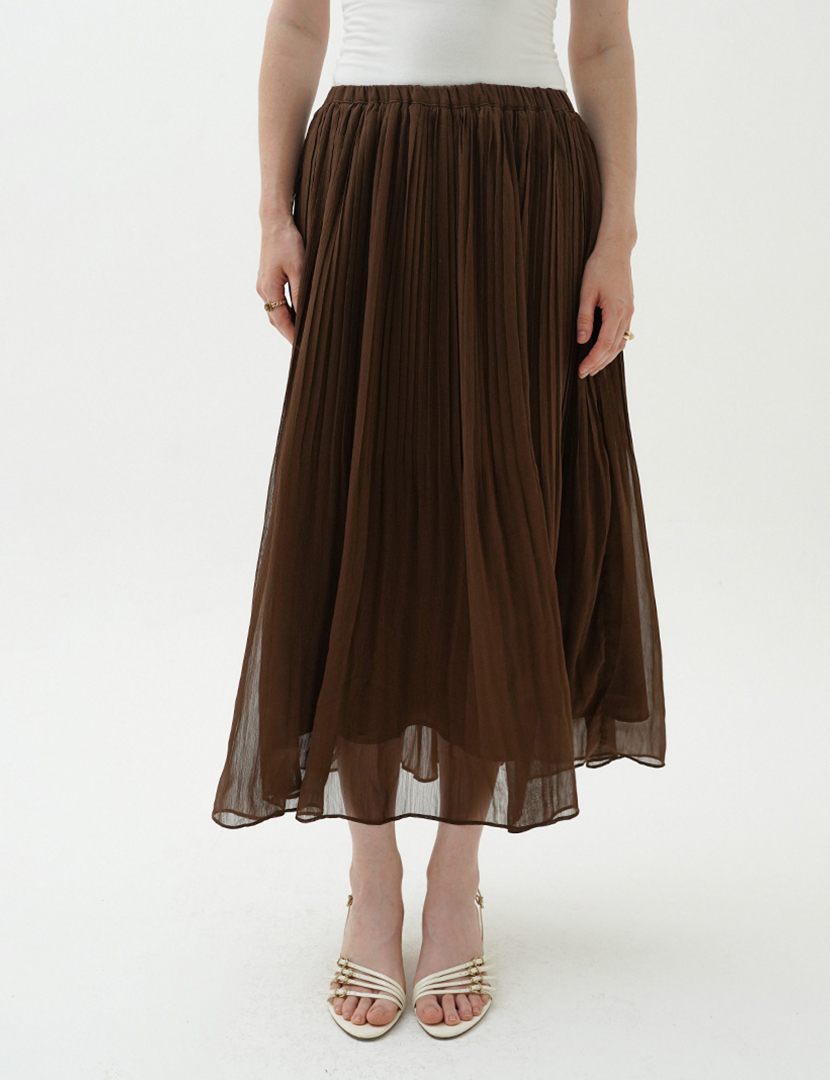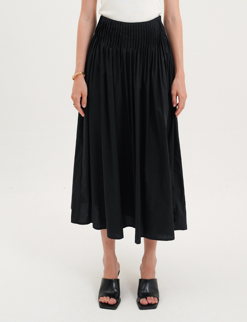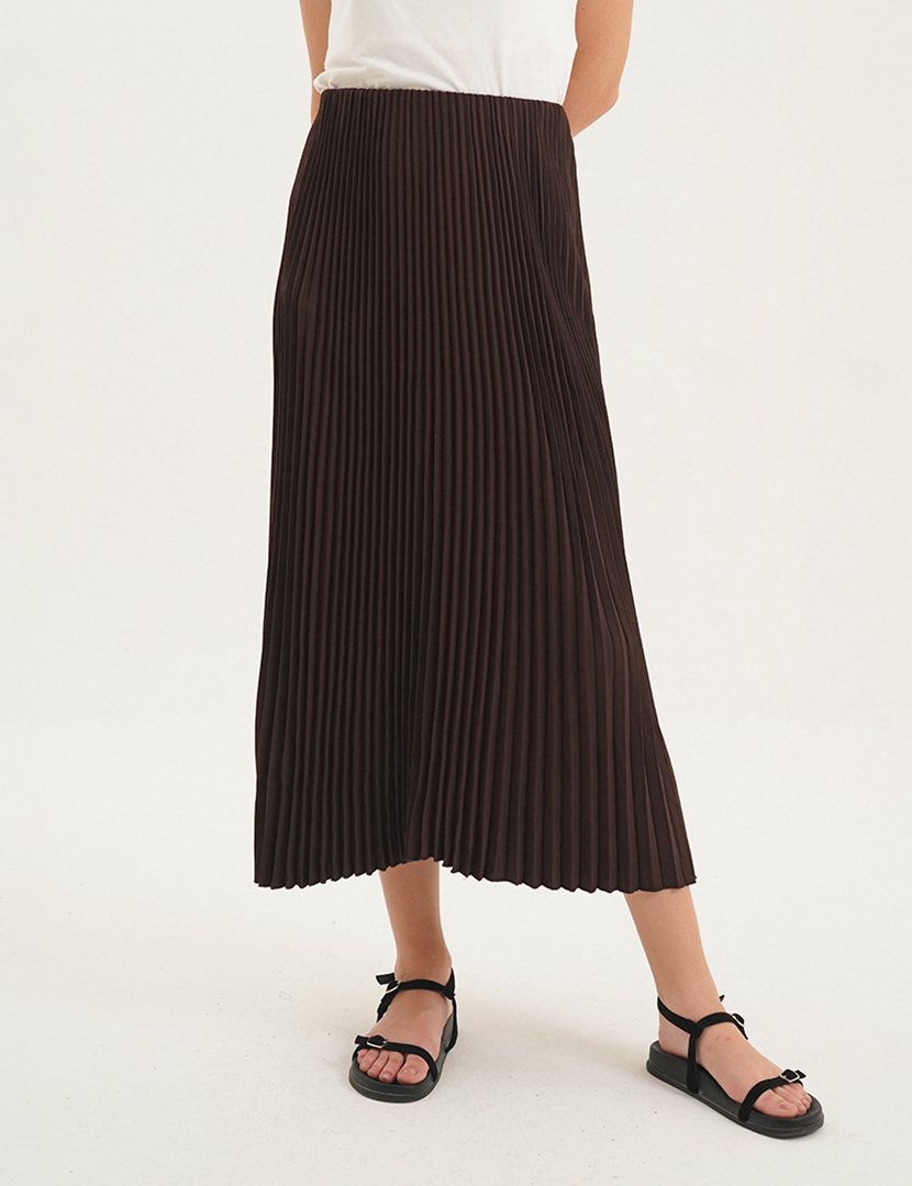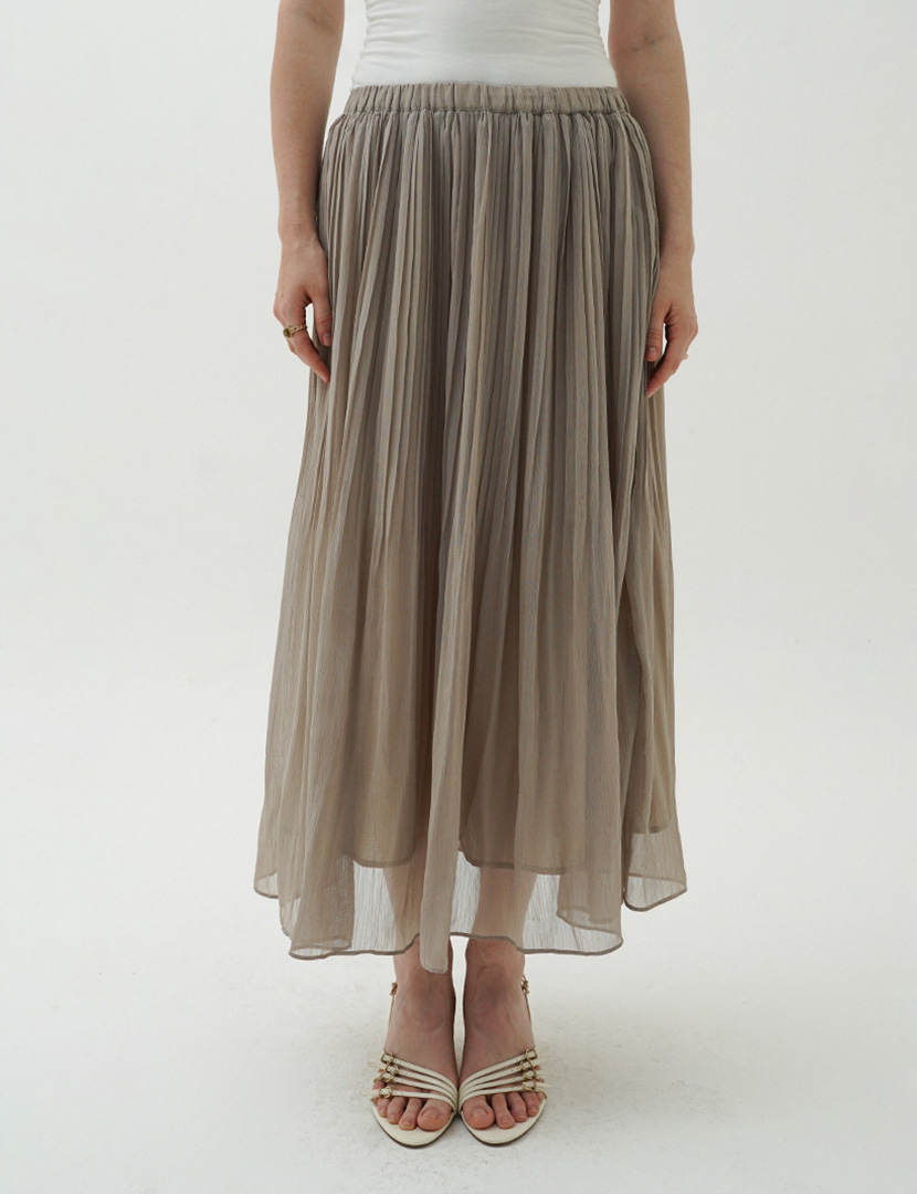 Fall Collection Cotton Pleated Midi Skirt Taupe
