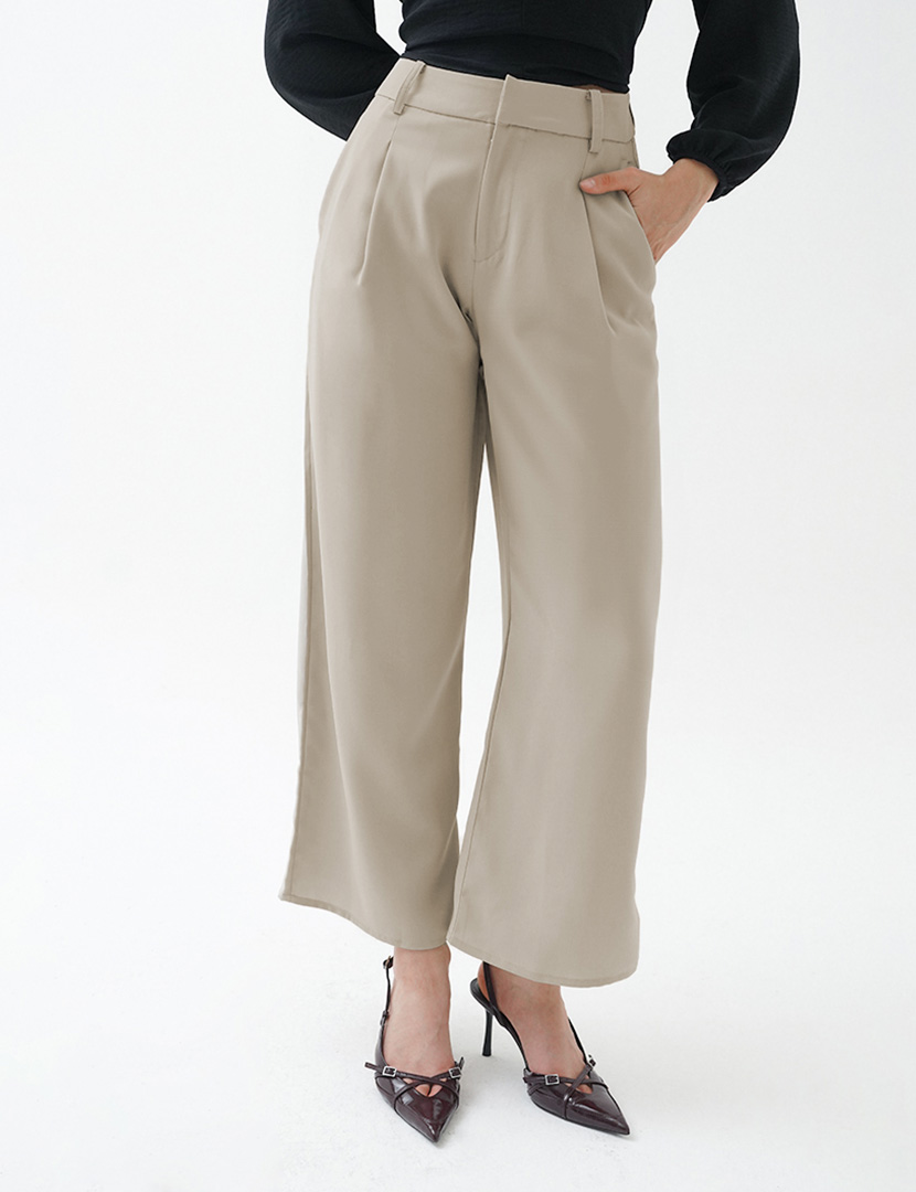 Fall Collection Pleated Wide Leg Pants Dark Brown