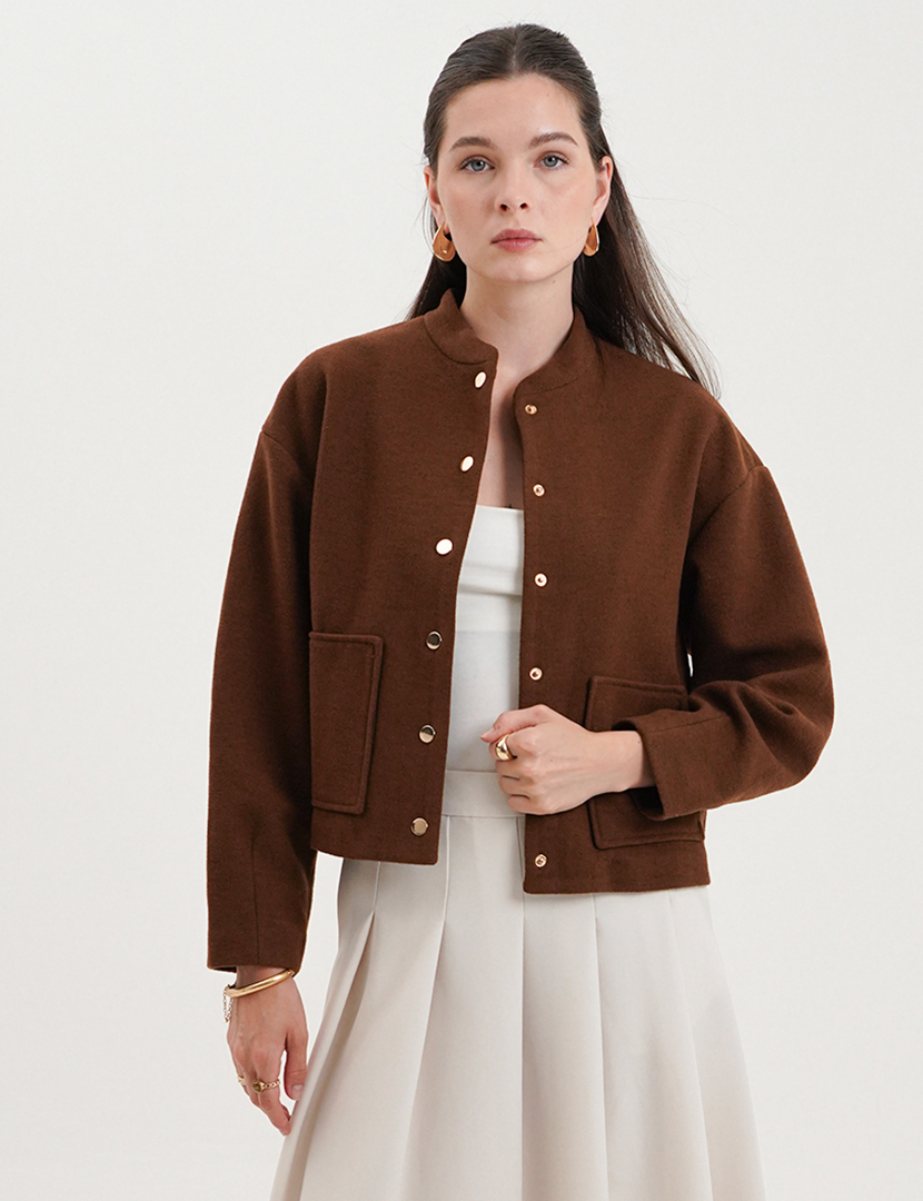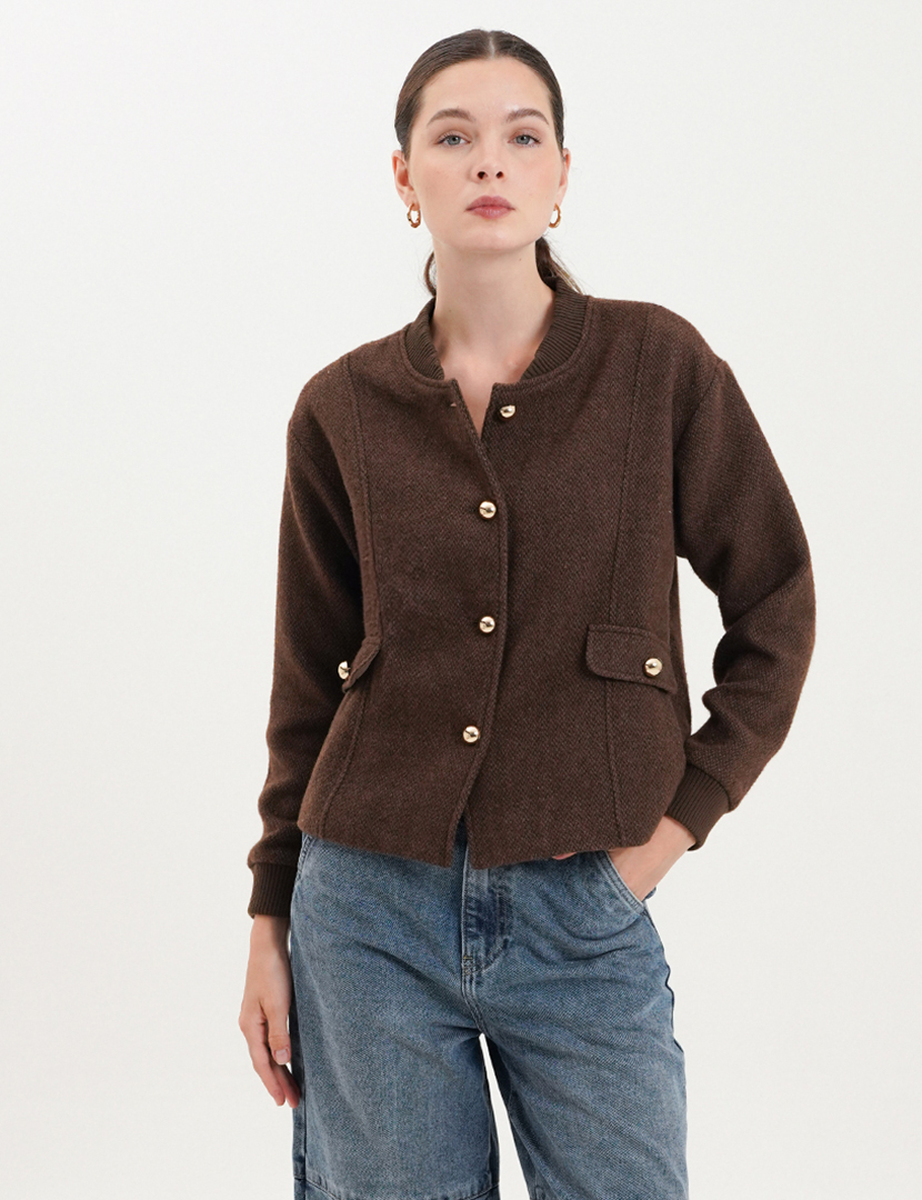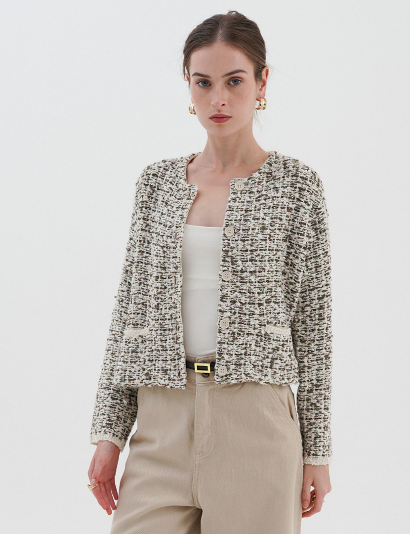 Fall Collection Cropped Cotton Blend Tweed Jacket Brown
