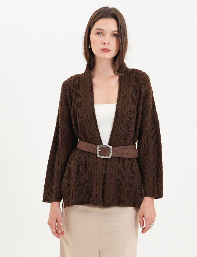 Fall Collection Cable Oversized Knit Cardigan Brown