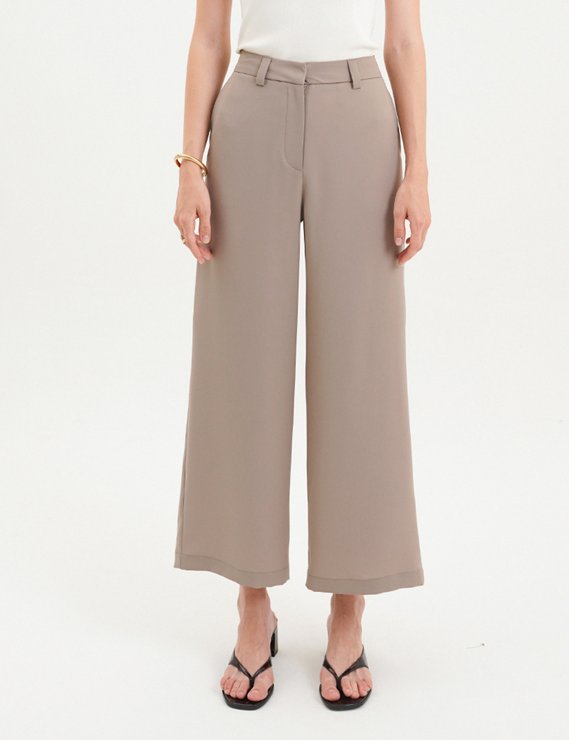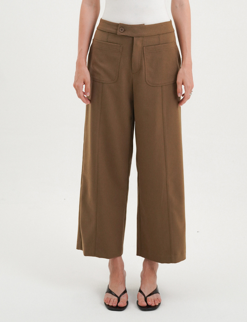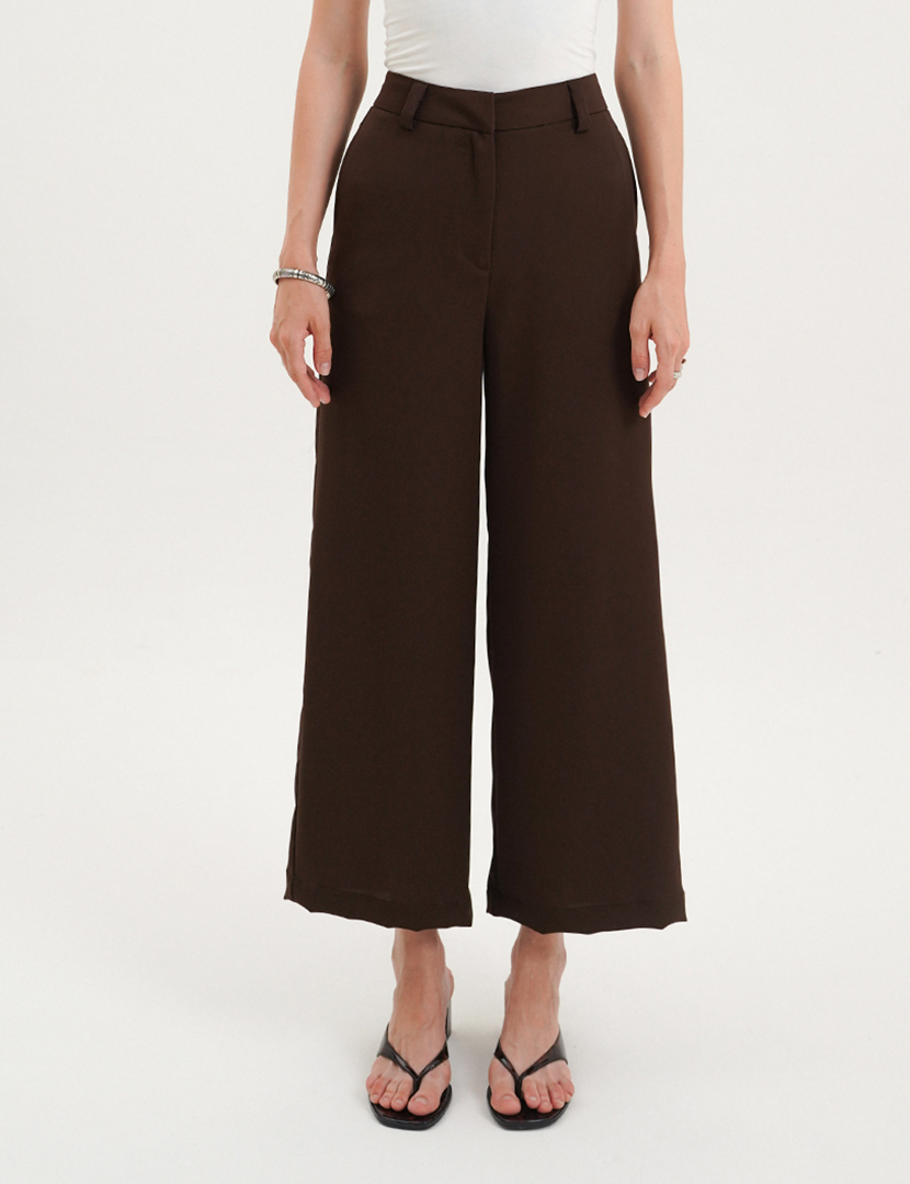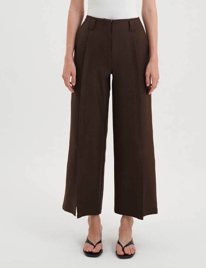 Fall Collection Pleated Wide Leg Pants Dark Brown