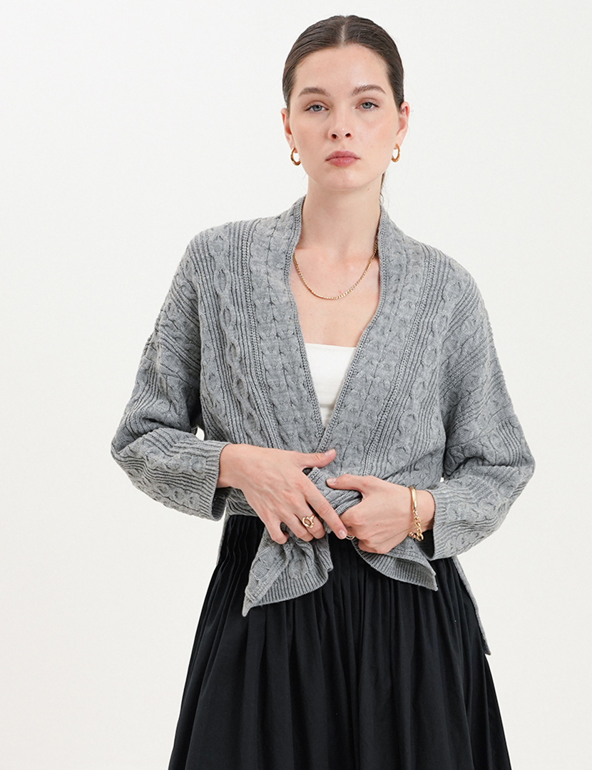 Fall Collection Cable Oversized Knit Cardigan Light Grey