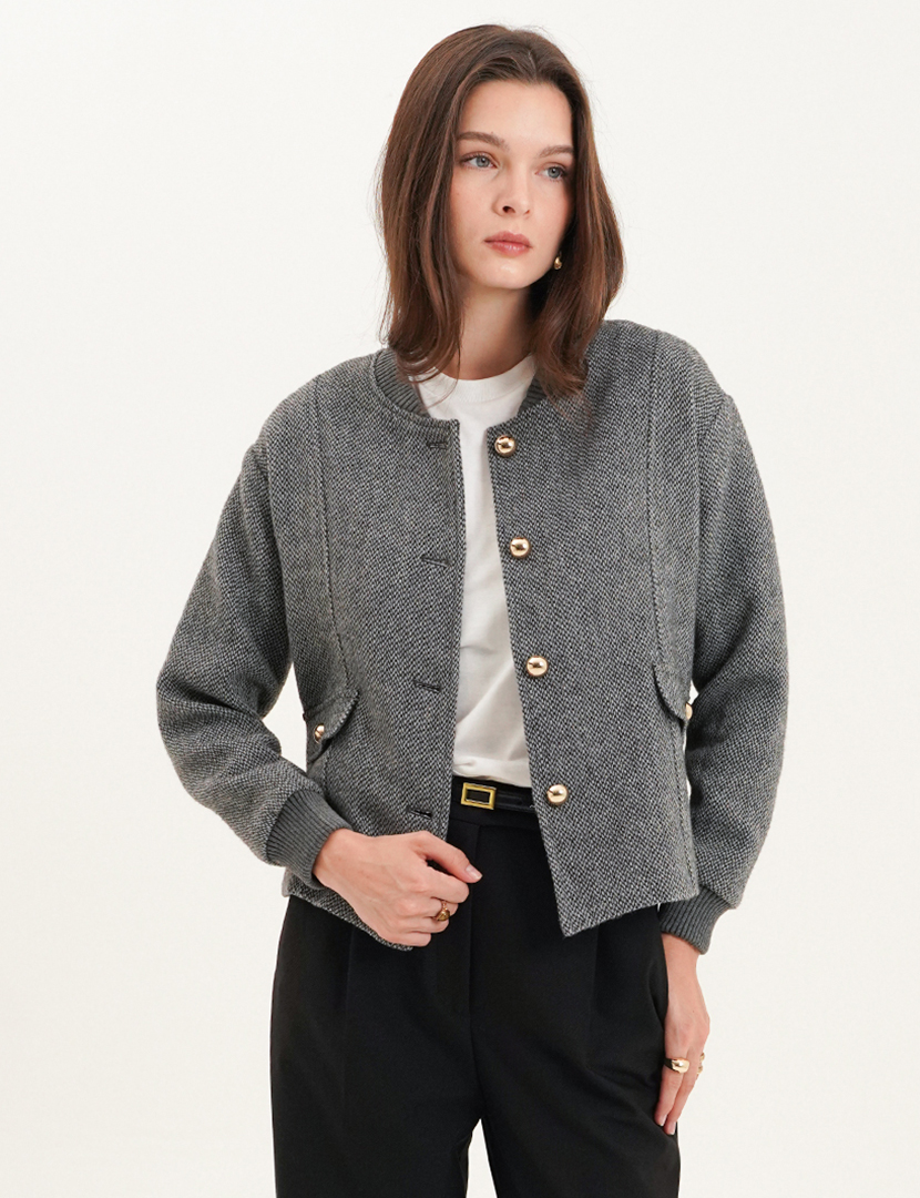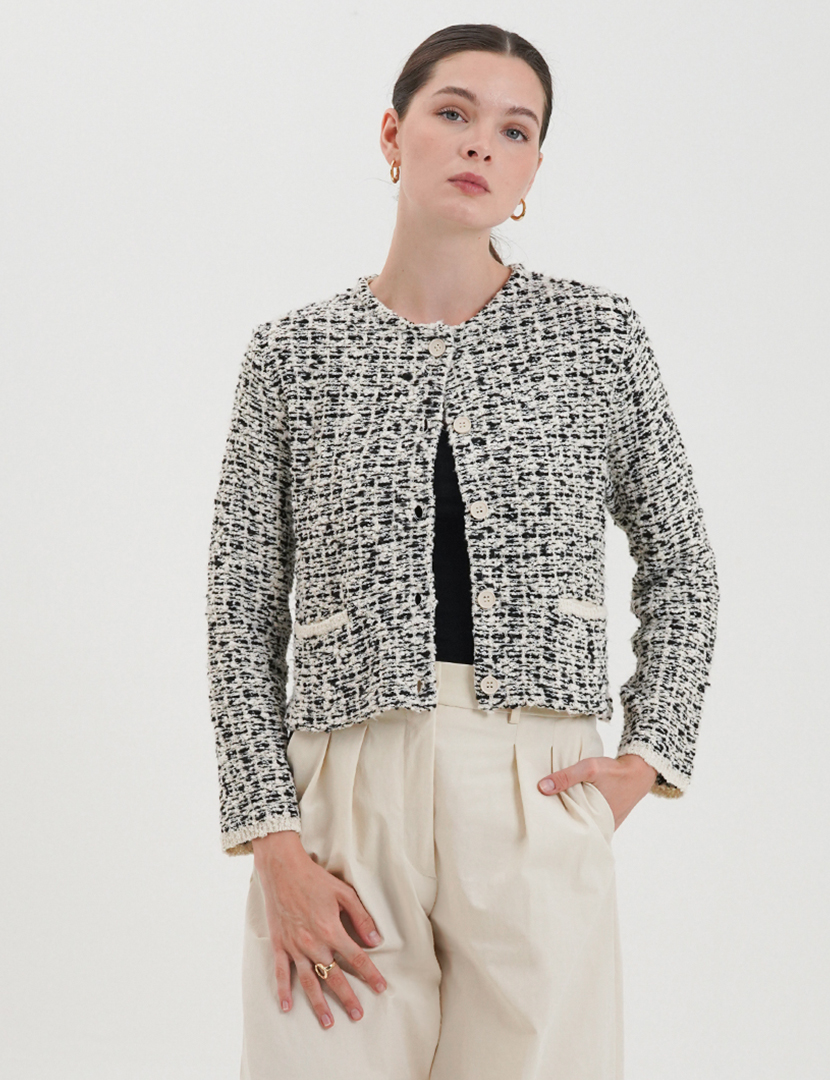 Fall Collection Cropped Cotton Blend Tweed Jacket Grey