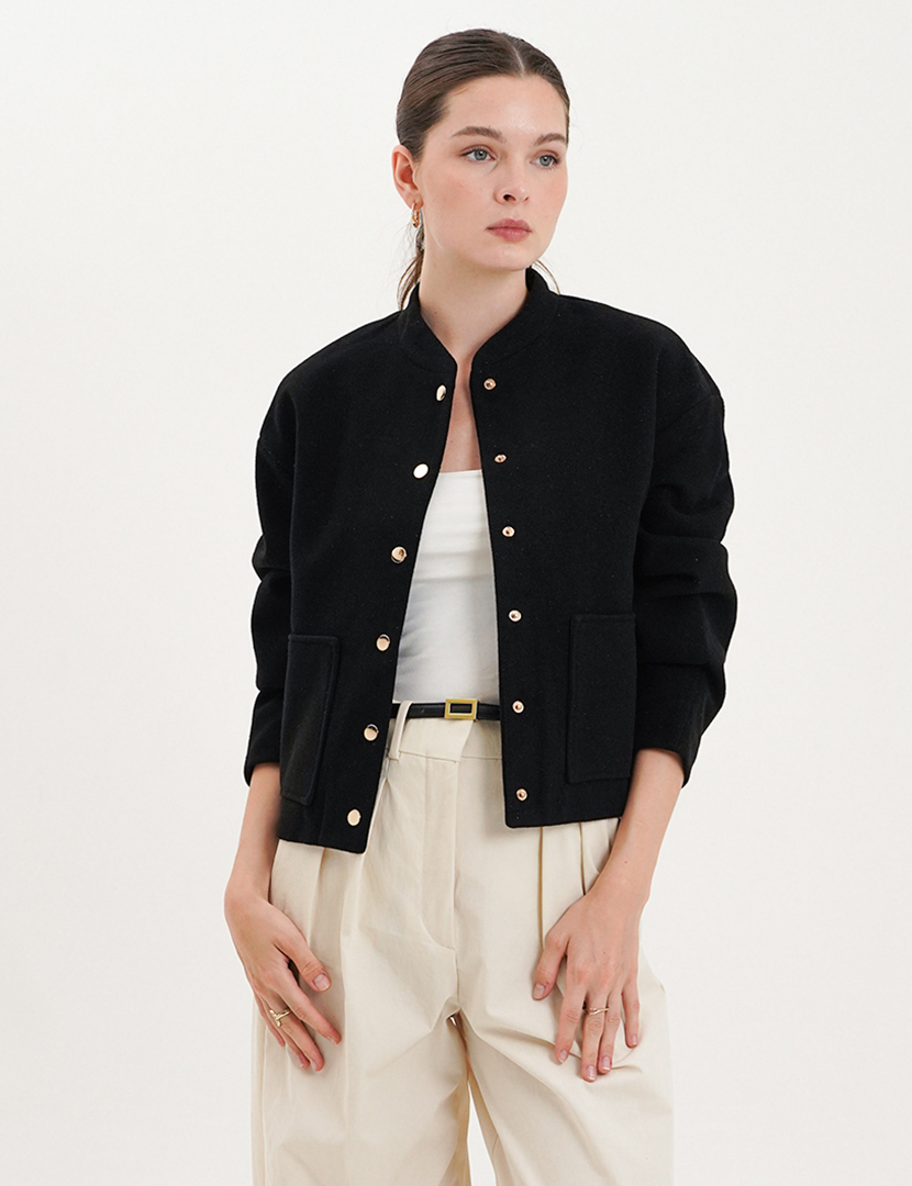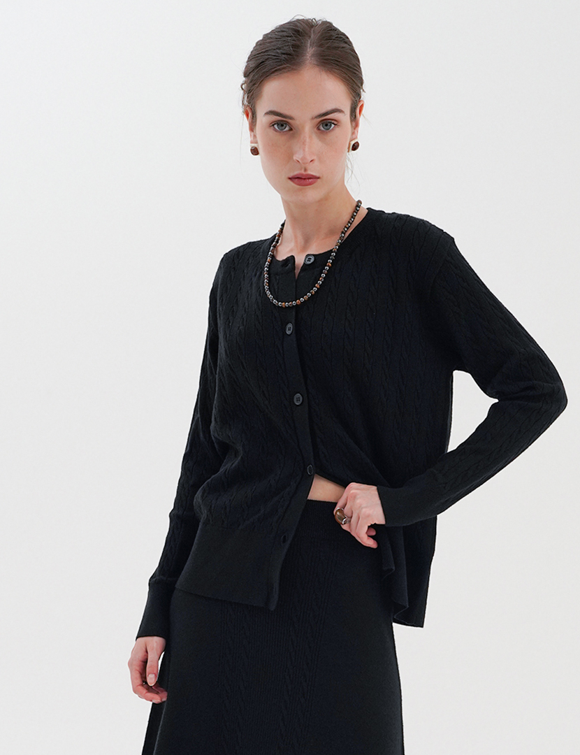 Fall Collection Cable Knit Crewneck Cardigan Black