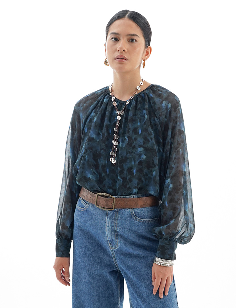 La Nature Cree Printed Long Sleeve Blouse Dark Green