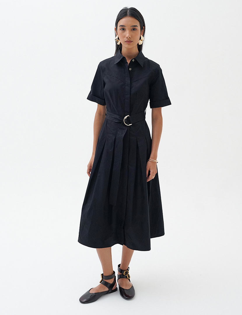La Naturecree Belted Midi Dress Black