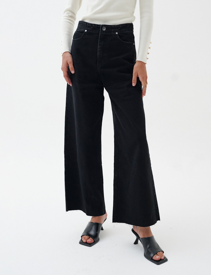 La Naturecree Unfinished Wide Leg Pant Denim Premium Black