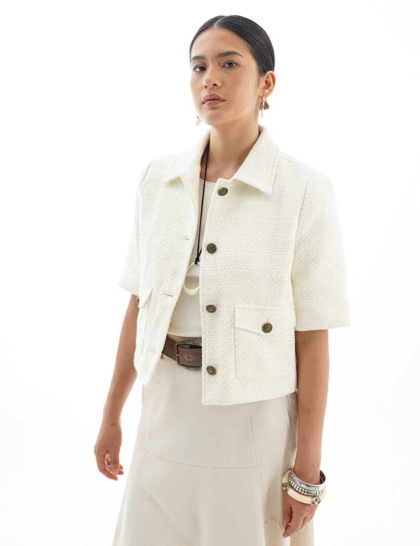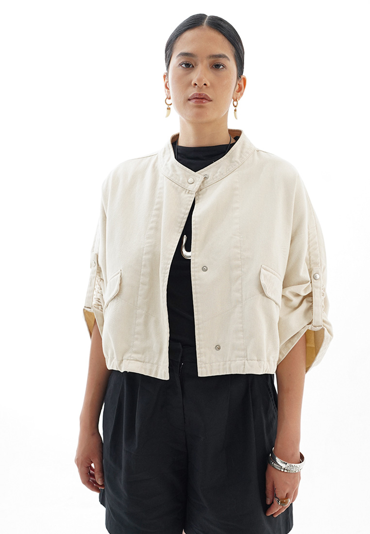 La Nature Cree Cropped Utility Jacket Off White