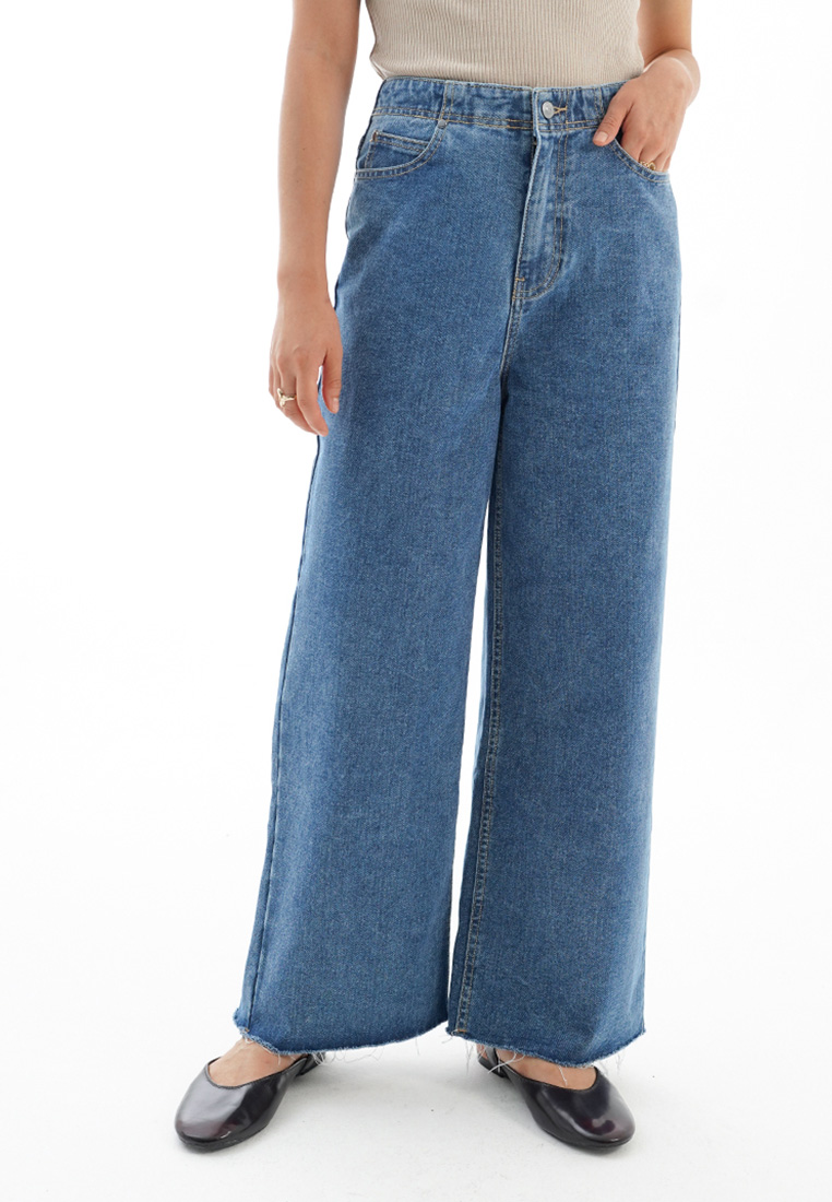 La Nature Cree Unfinished Wide Leg Pant Denim Premium