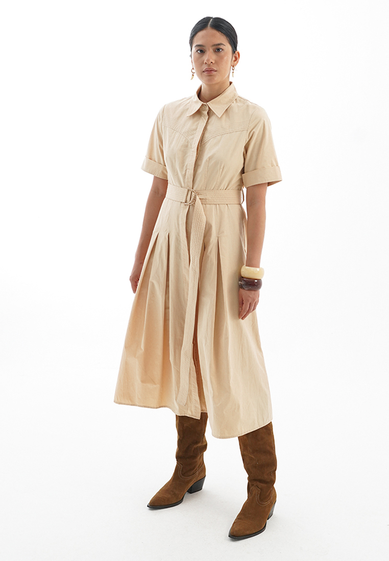 La Nature cree Midi Dress With Belted Waist Cream