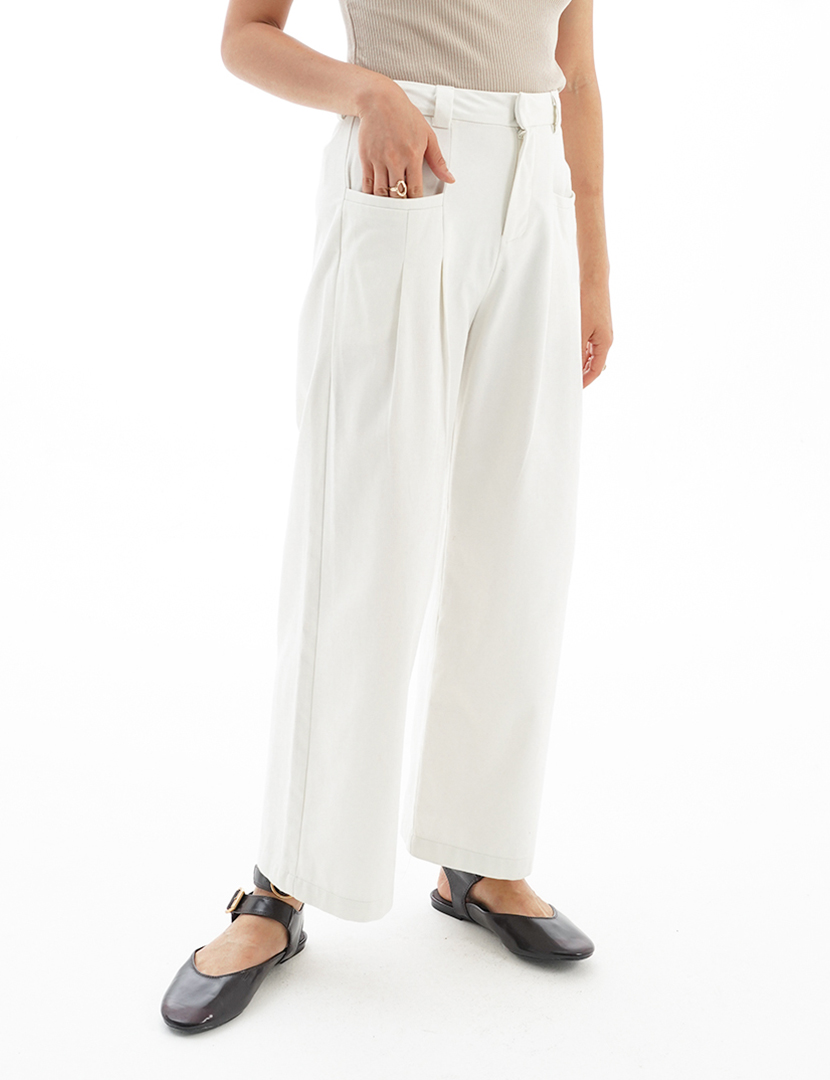 La Nature Cree Cotton Pocket Pants Off White