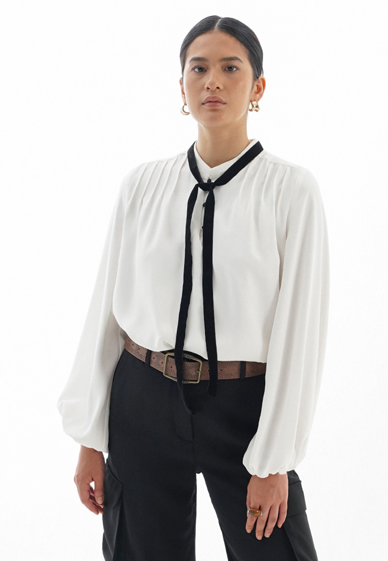 La Naturecree Velvet Necktie Blouse off White